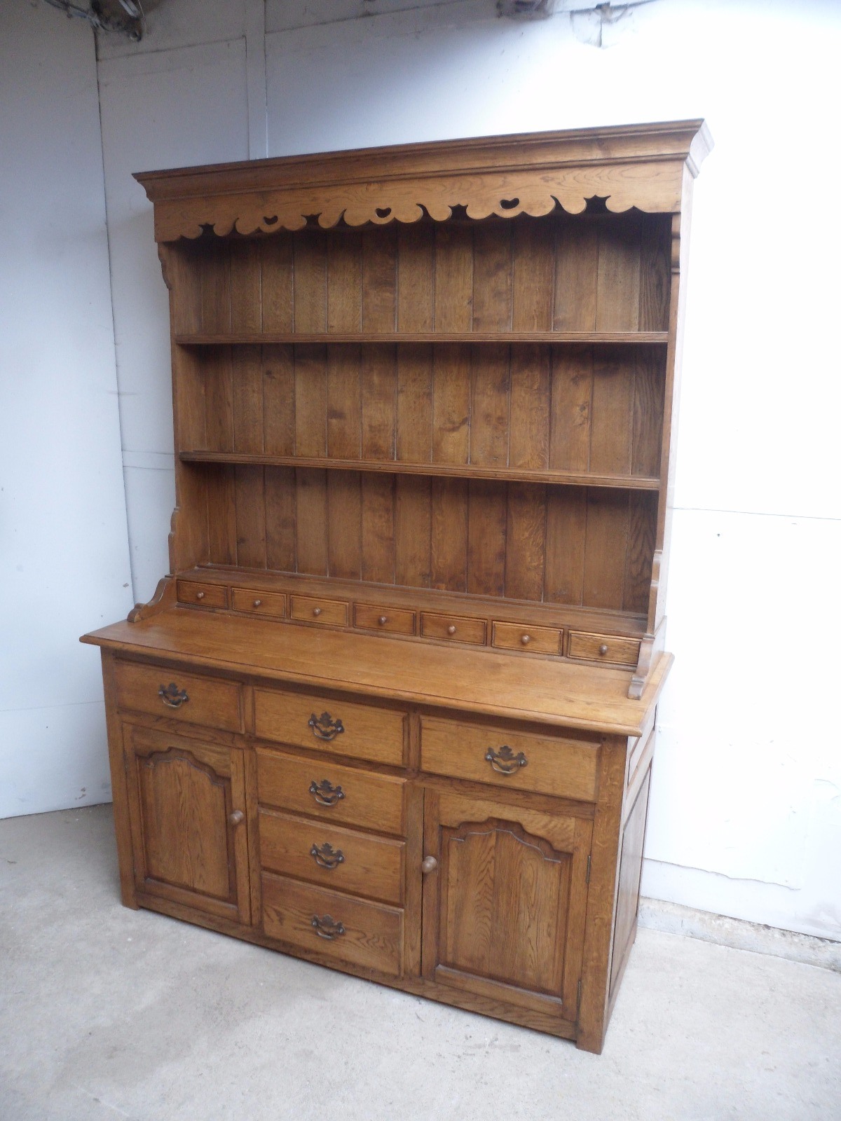 A Wonderful Large Light Oak 2 Piece Welsh Plate Rack Late 20th Century Dresser