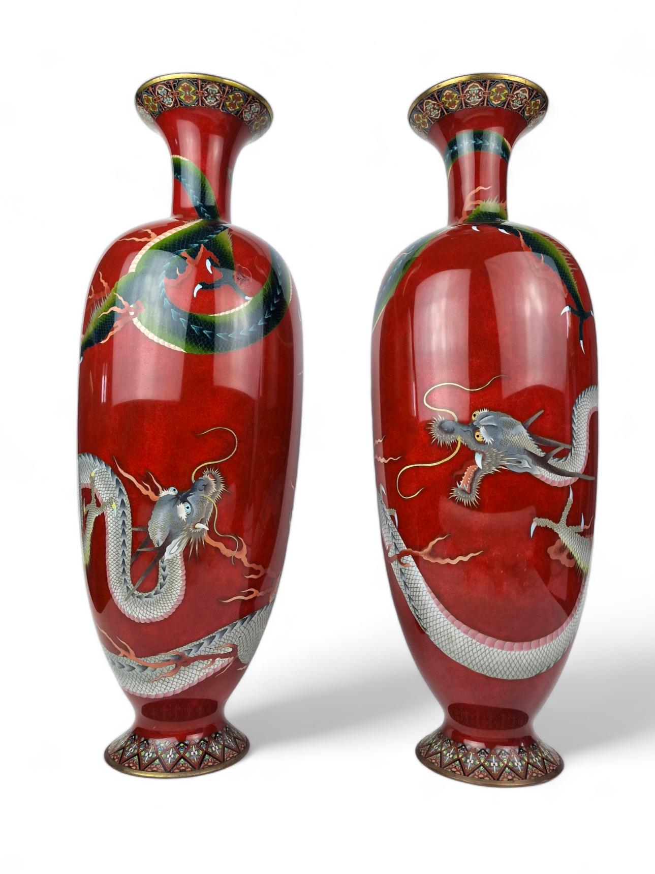 A Wonderful, Very Tall Rare Pair of Opposing Design, Japanese, Hand Decorated, Cloisonné Baluster Vases, Meiji Period  c.1910 (1 of 24)