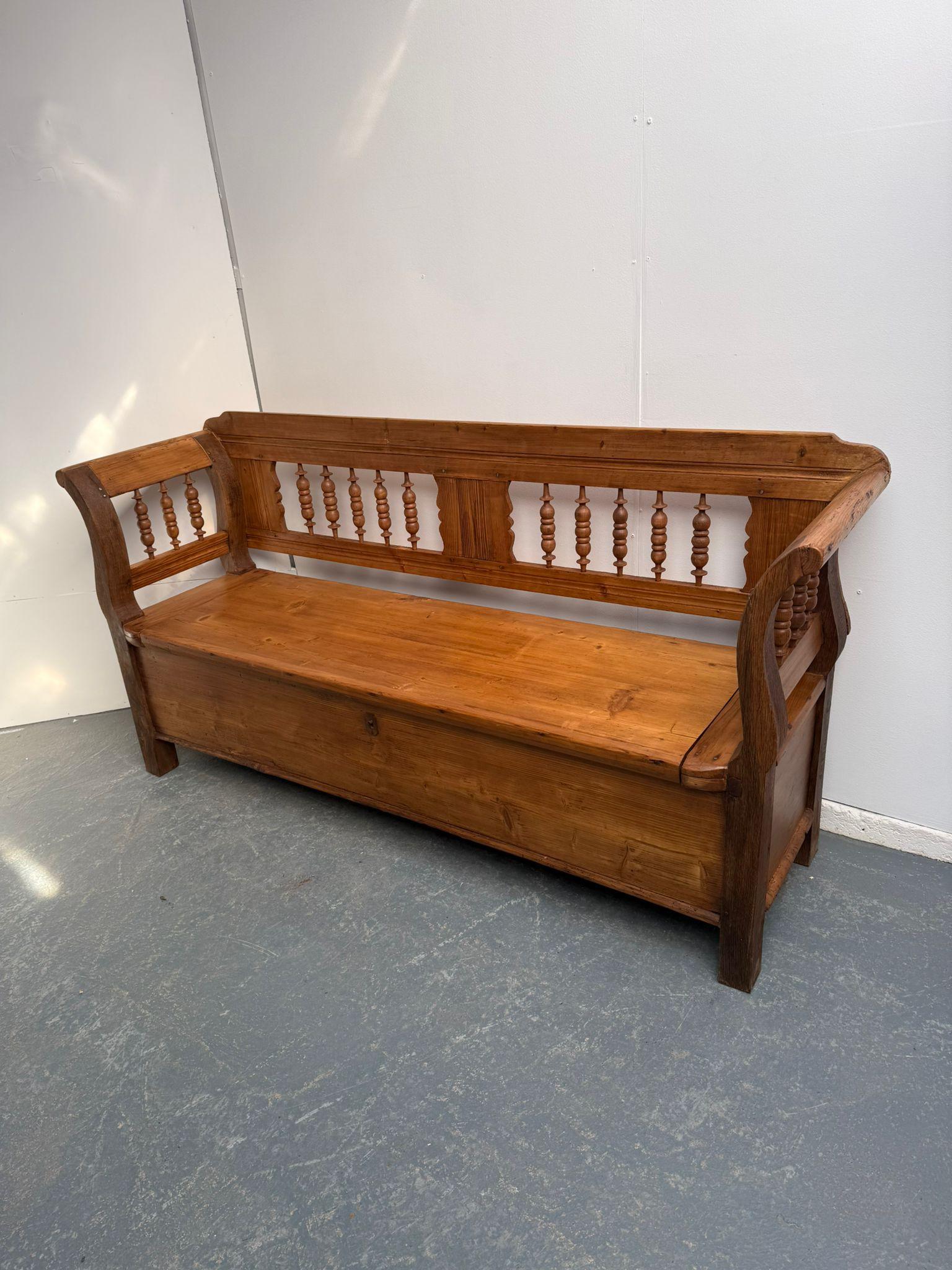 A Wonderful Waxed Original Victorian Pine Hungarian 3 Seater Box Settle / Bench