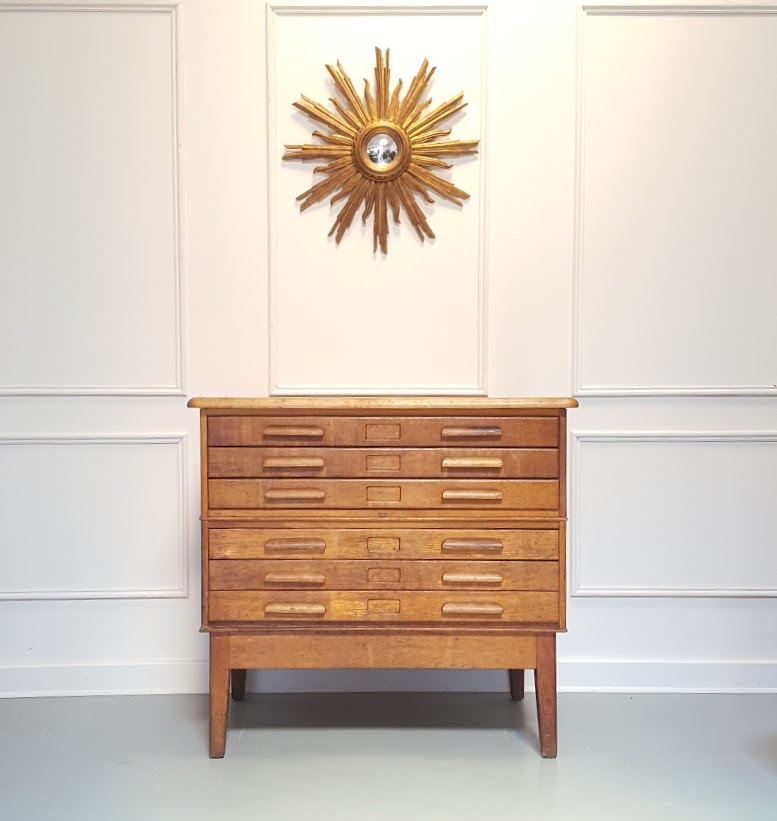 Abbess Oak Plan School Architect Drawers Chest c.1940