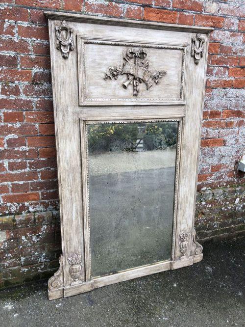 Absolutely Stunning Large Antique 19th Century French Carved Wood Painted & Gilt Shaped Top Mirror