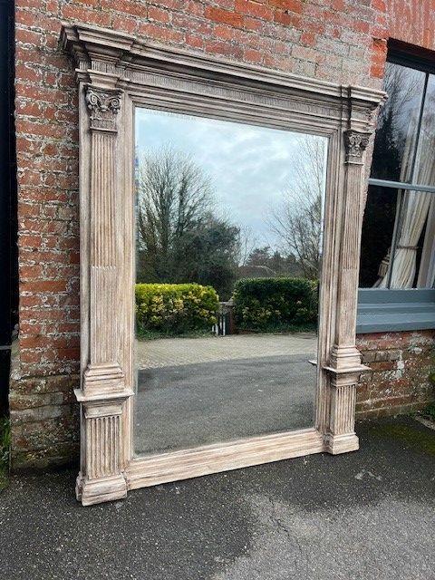 Absolutely Stunning Large Antique English 19th Century Carved Wood Painted Ornate Column Framed Mirror