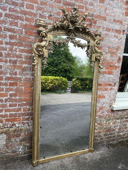 Absolutely Stunning Large Antique French 19th Century Carved Wood & Gesso Original Gilt Mirror