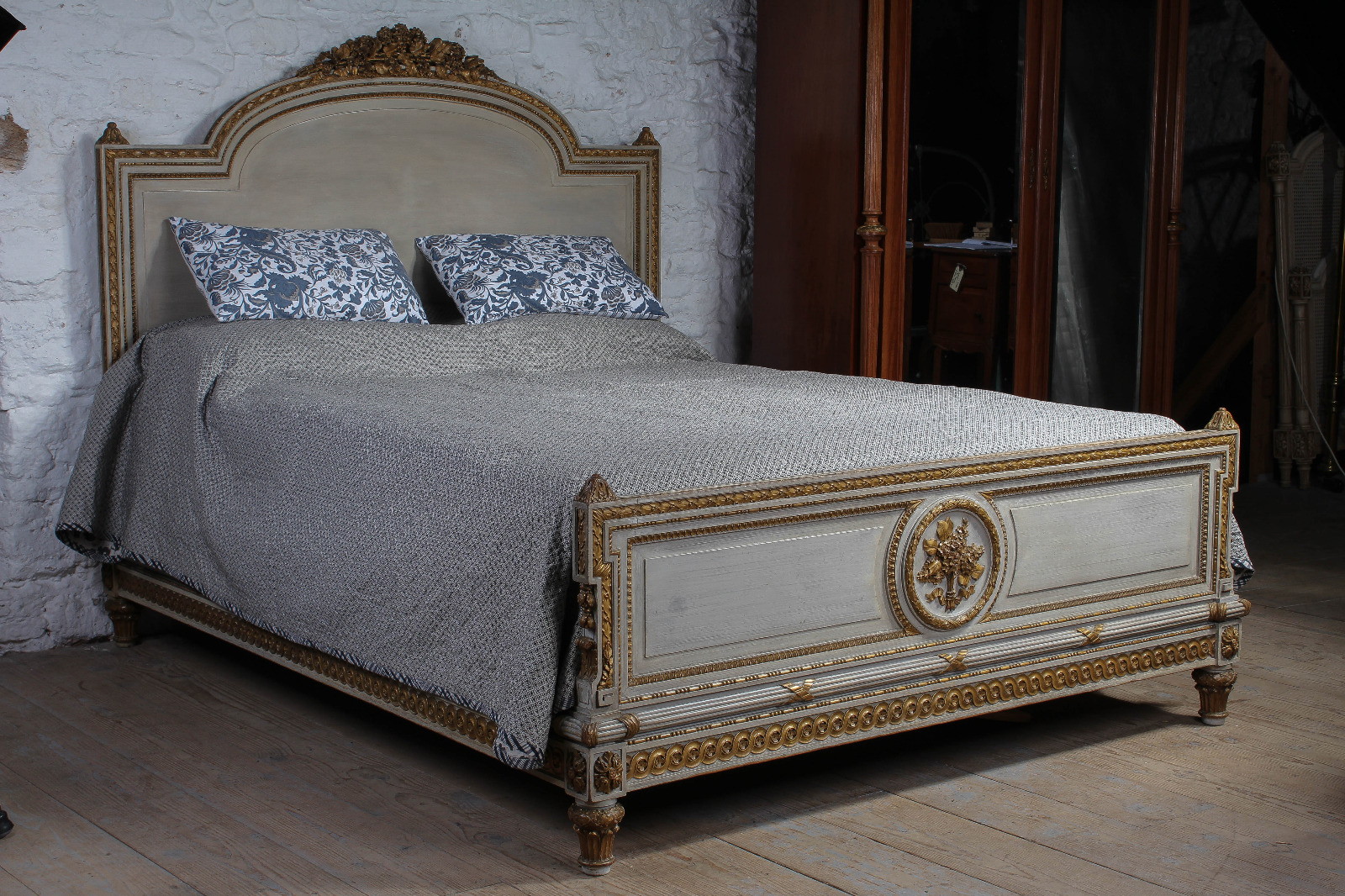 Absolutely Stunning Original European King Size Gilded and Painted Wooden French Bed
