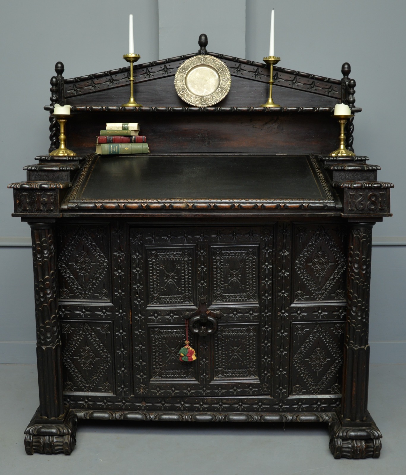 Adapted 17th Century Carved Oak Cupboard Standing Bureau