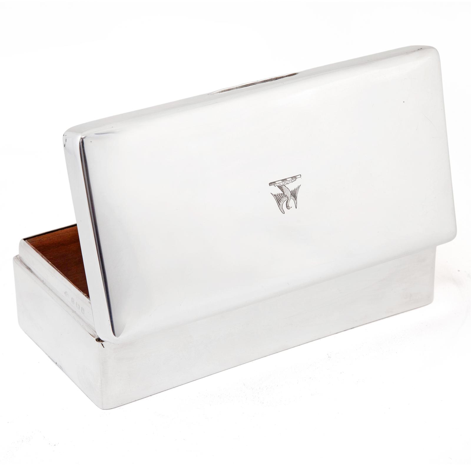 Adie Brothers Silver Cigar or Cigarette Box with a Hinged Crested Solid Lid