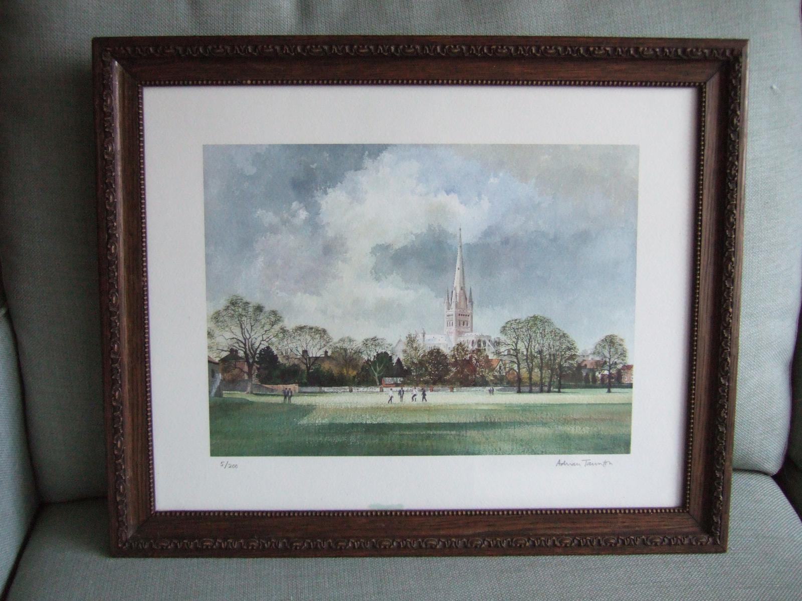 Adrian Taunton (b.1939) Limited Edition Print of Norwich Cathedral Close
