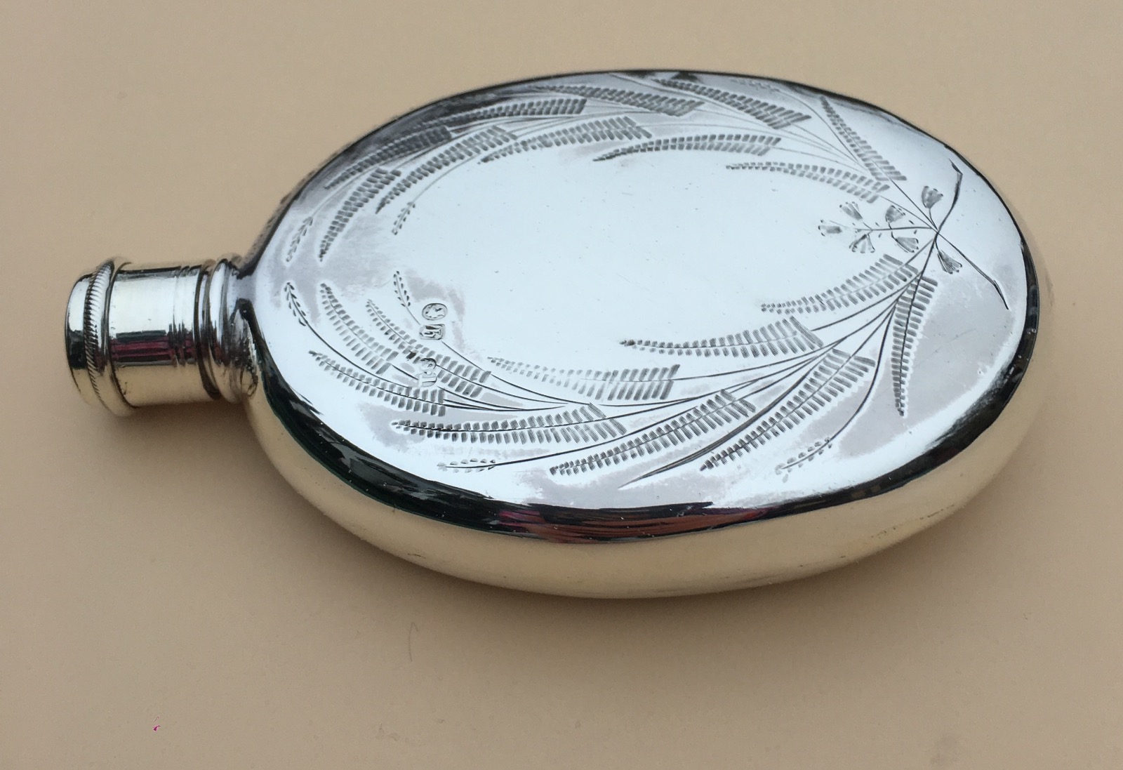 Aesthetic Movement Silver Hip or Pocket Flask 1871