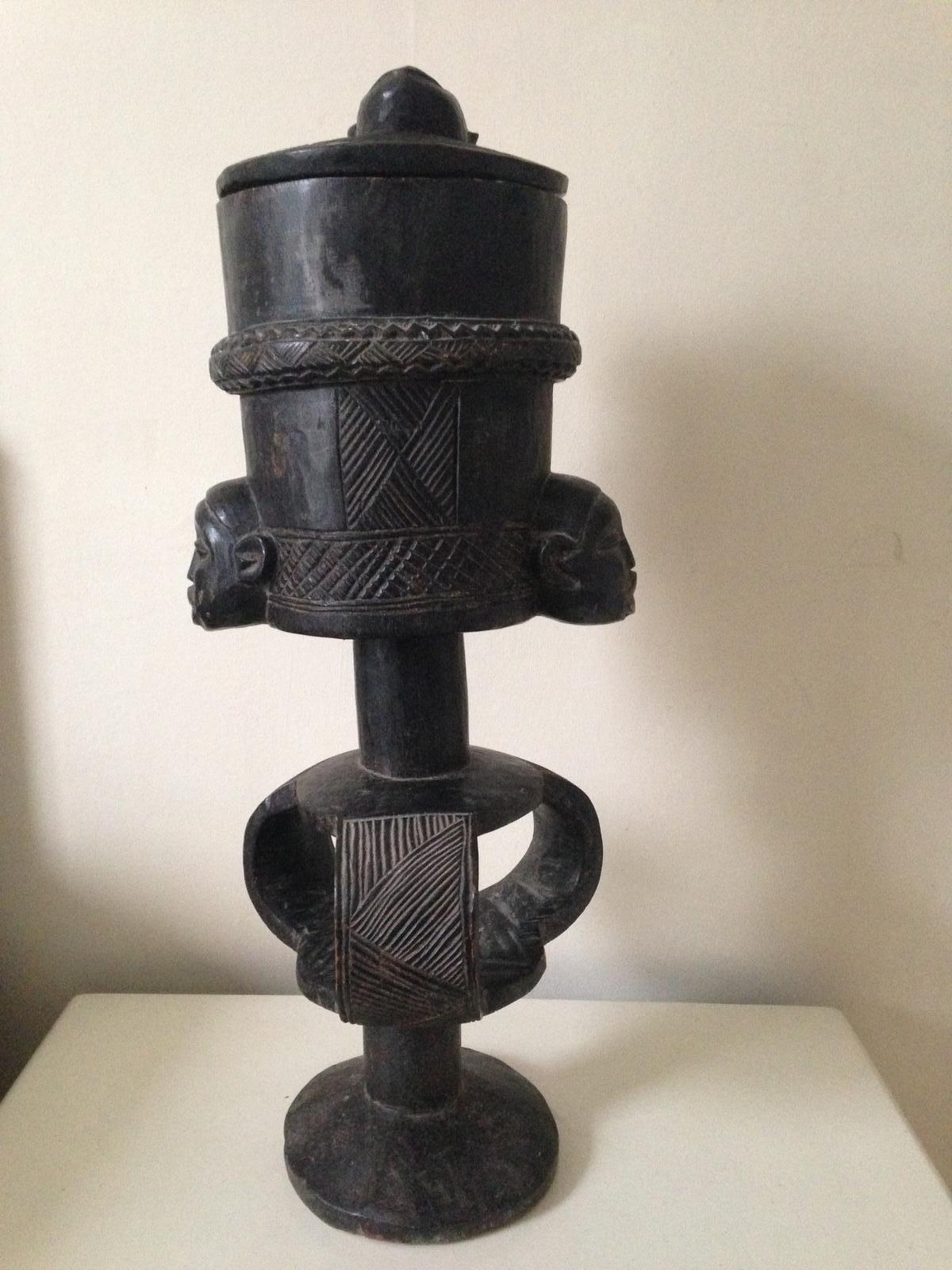 African Large Carved Wood Ritual Divination Offering Bowl / Ceremonial Vessel