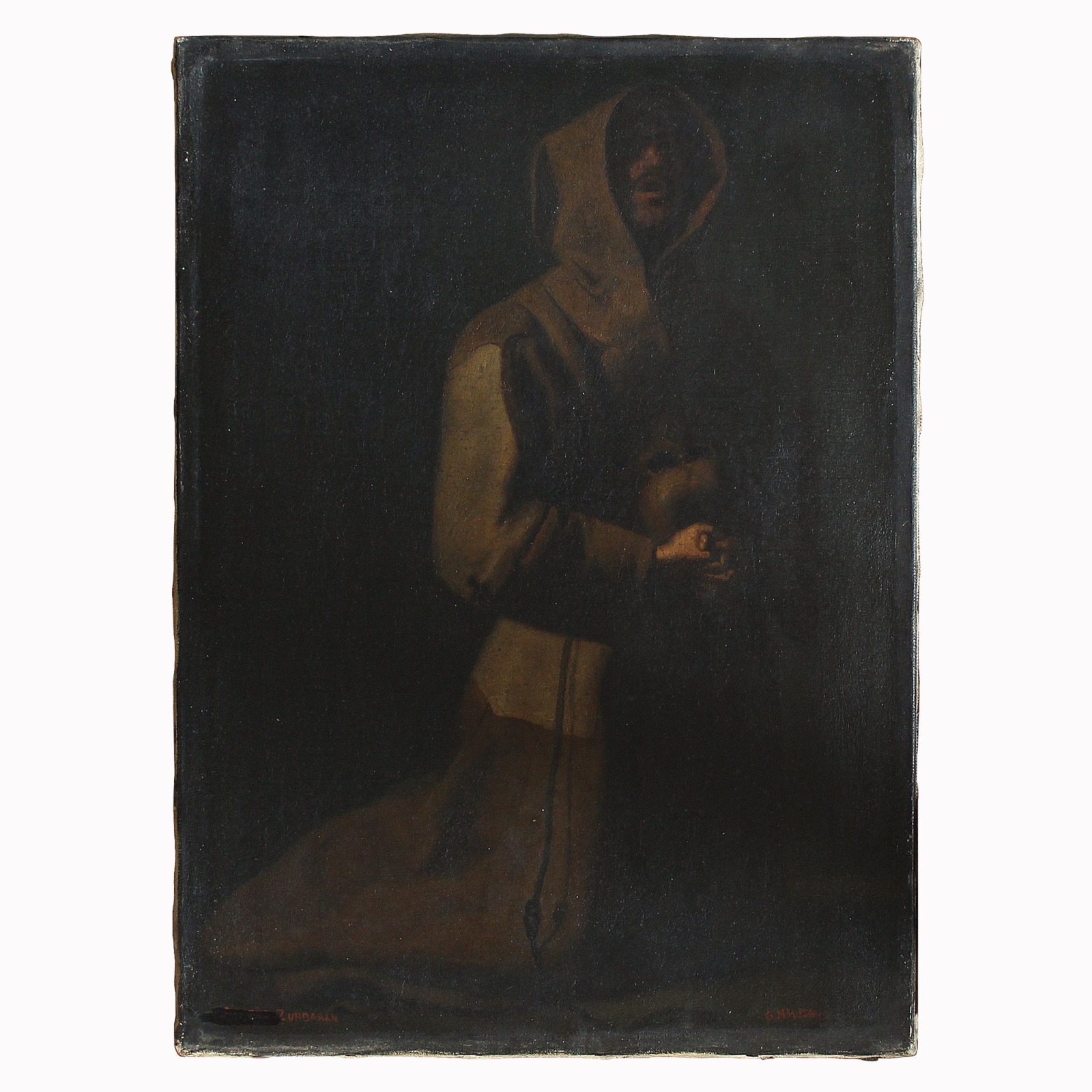 After Francisco De Zurbaran, Saint Francis in Meditation, Antique Oil Painting