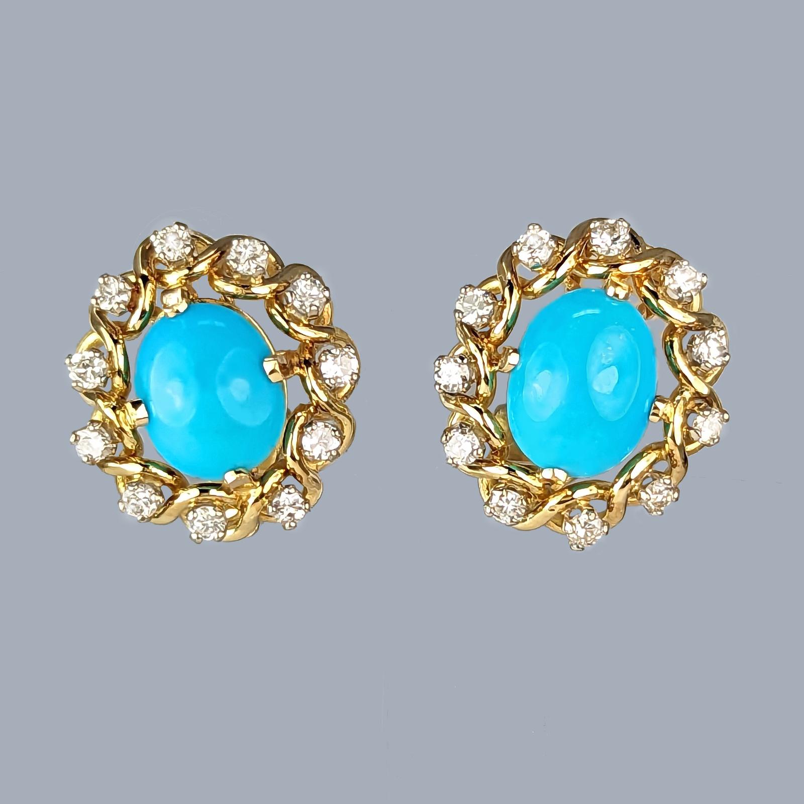 Alan Martin Gard Turquoise Diamond Earrings Vintage Cluster Ear Clips London 1980
