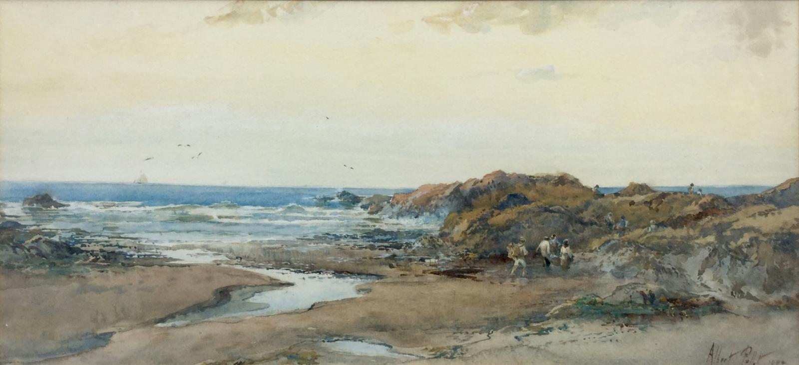 Albert Pollitt Watercolour - Figures in a Coastal Landscape