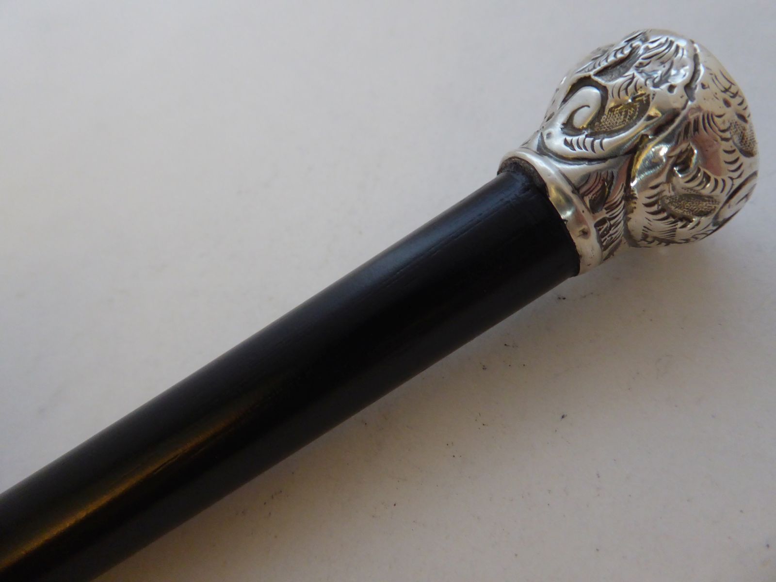 Alexander Ritchie 1892 Walking Stick Cane Solid Silver Pommel Ebony Shaft
