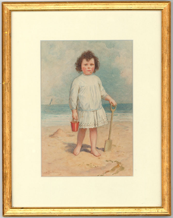 Alexander Strachan Buchanan - Signed 1916 Watercolour, Young Girl On a Beach