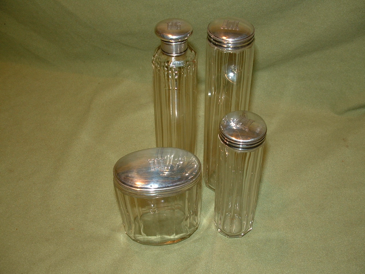 Alfred Clark Stamped Set of 4 Solid Silver Topped Dressing Jars. 1884
