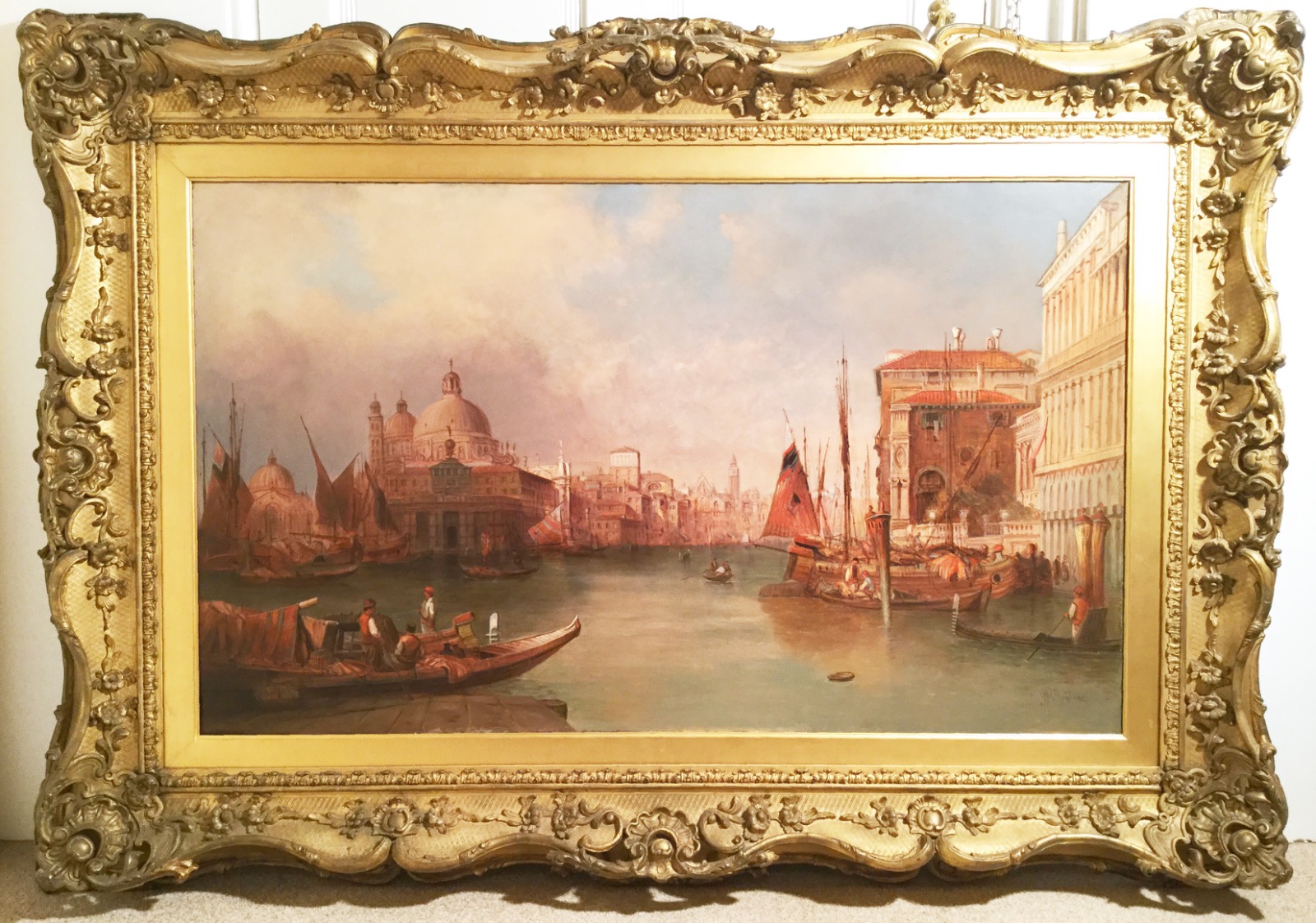 Alfred Pollentine Venetian 19th Century Oil Painting of Grand Canal Venice with Gondolas 48 X 68 Inches (1 of 1)