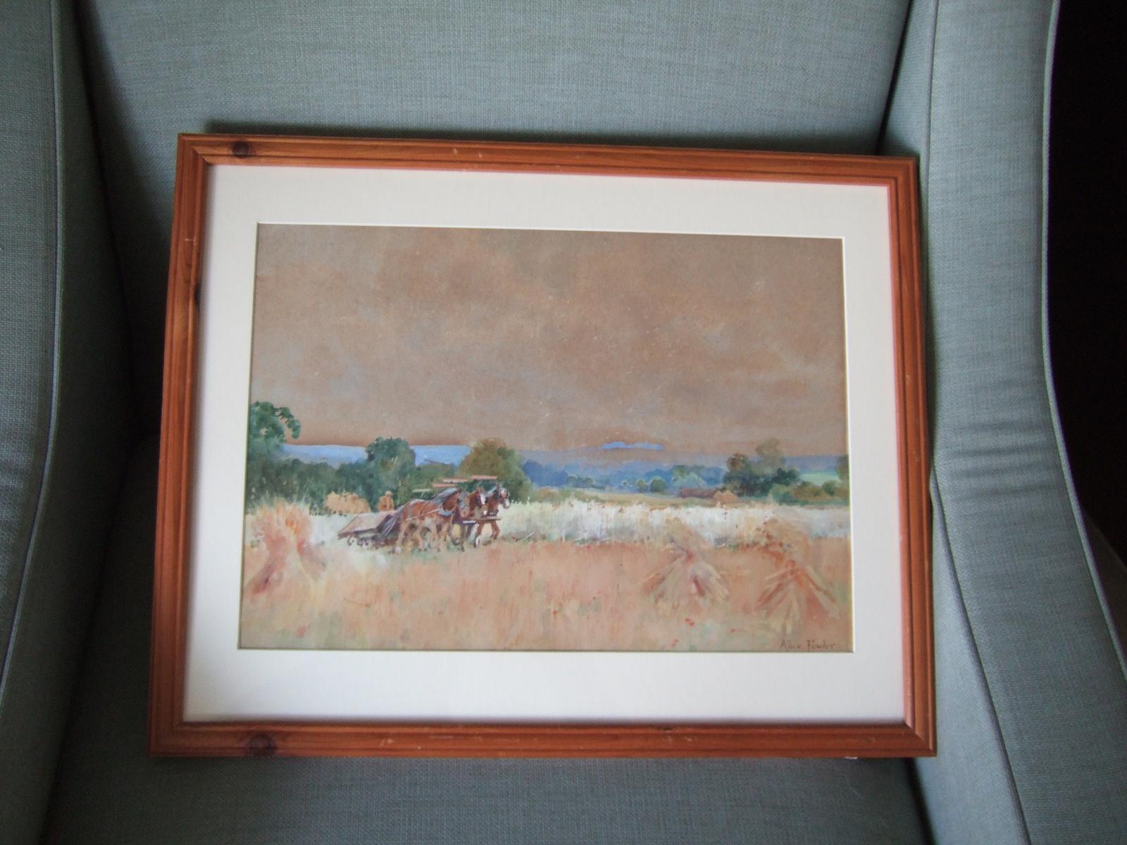 Alice Fowler 1861-1949 Watercolour of Harvesting with a Team of Horses (1 of 3)