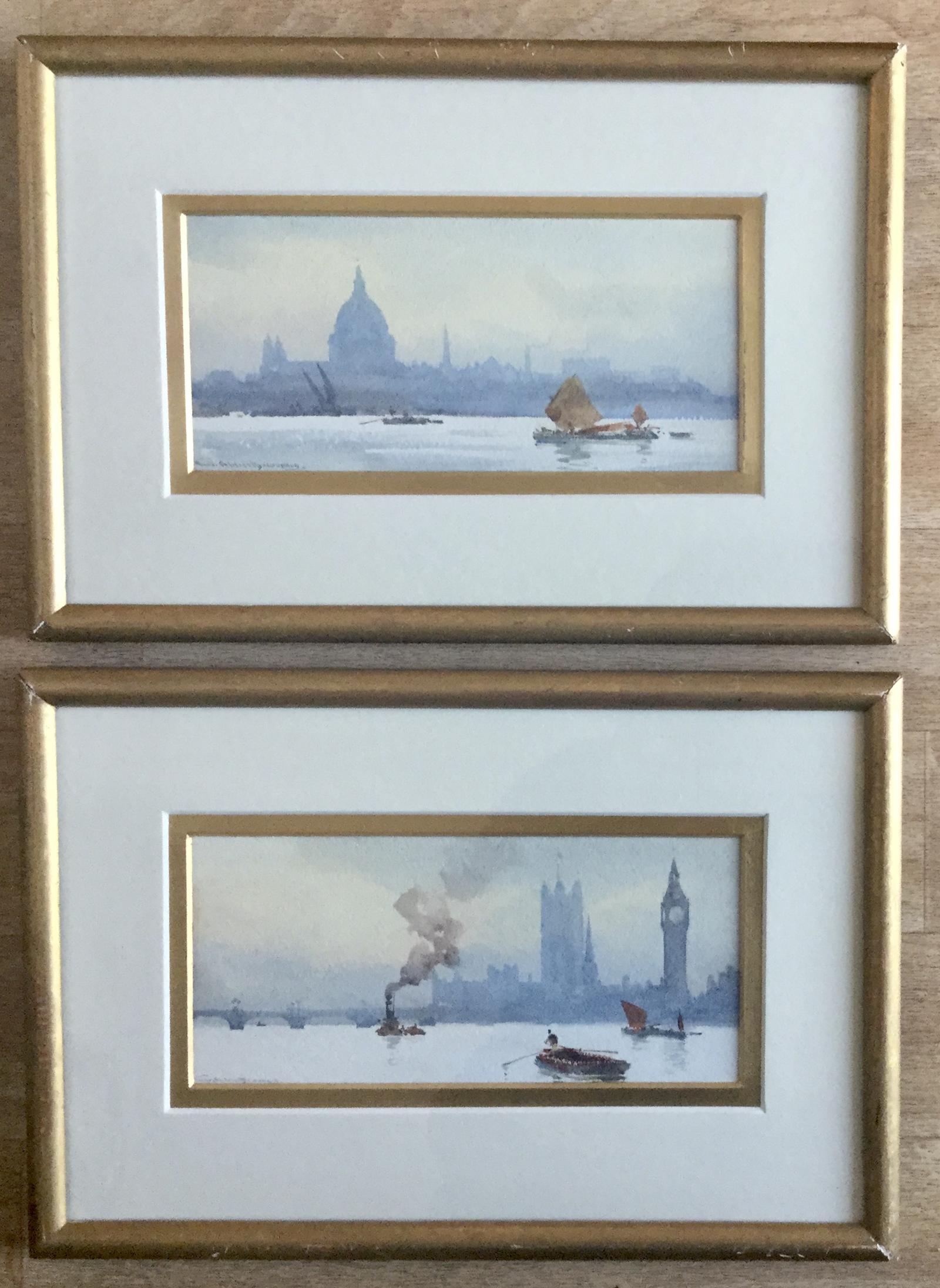 Alister MacDonald Pair of Watercolours ‘ St Pauls Cathedral & The Houses of Parliament from the River Thames’