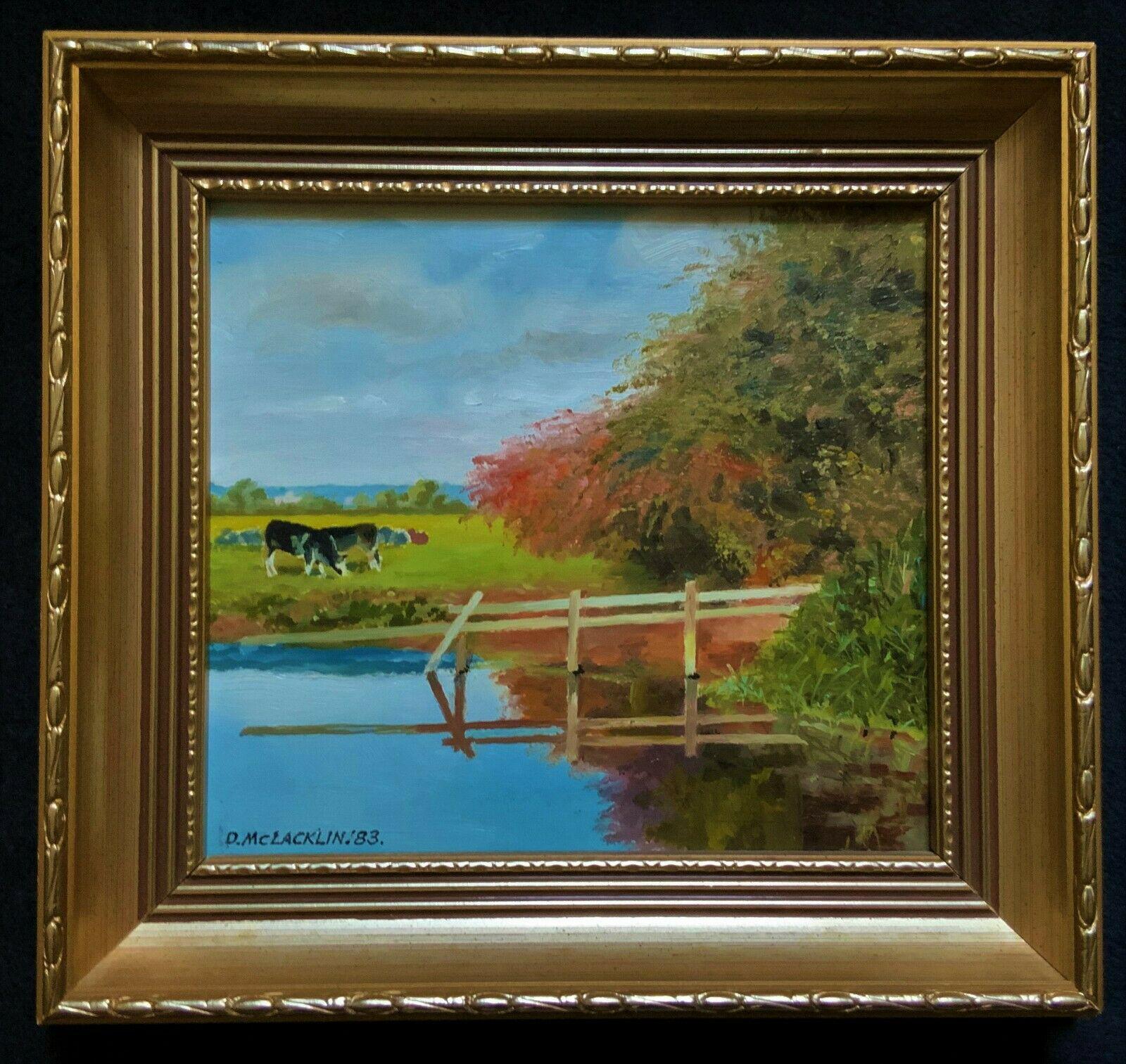 'Along The Canal, Taunton' Original Cattle Landscape Oil on Board Painting