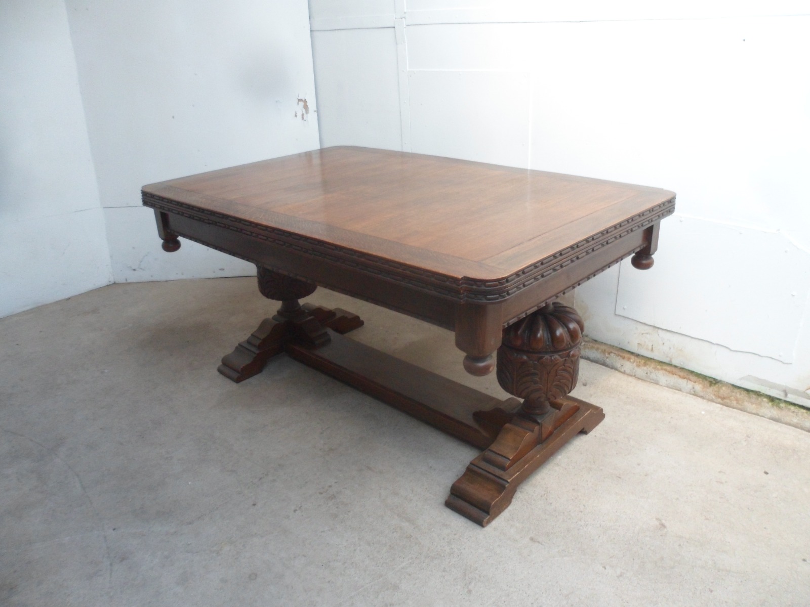 Amazing 1920s Original Golden Oak Carved 2 Leaf 10-12 Seater Dining Table