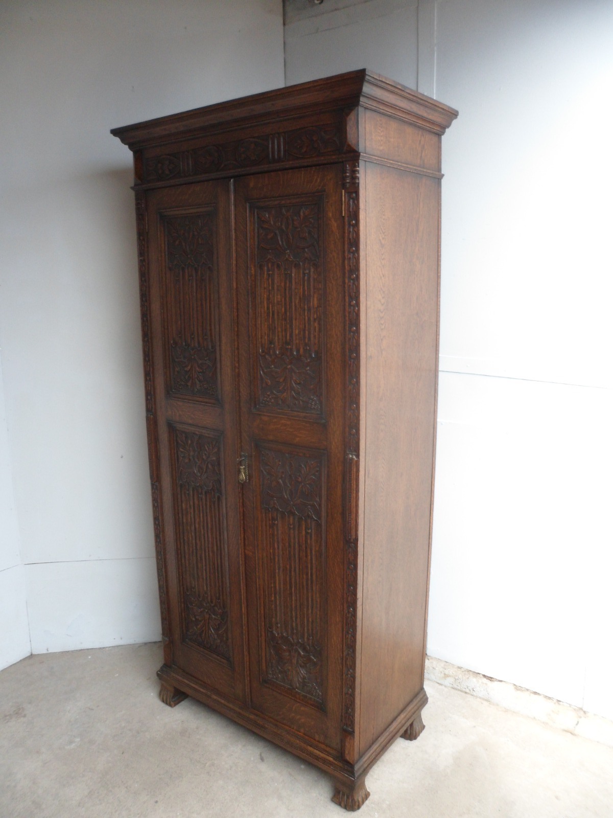 Amazing 1920s Original Maples Golden Oak 2 Door Carved Hall Wardrobe