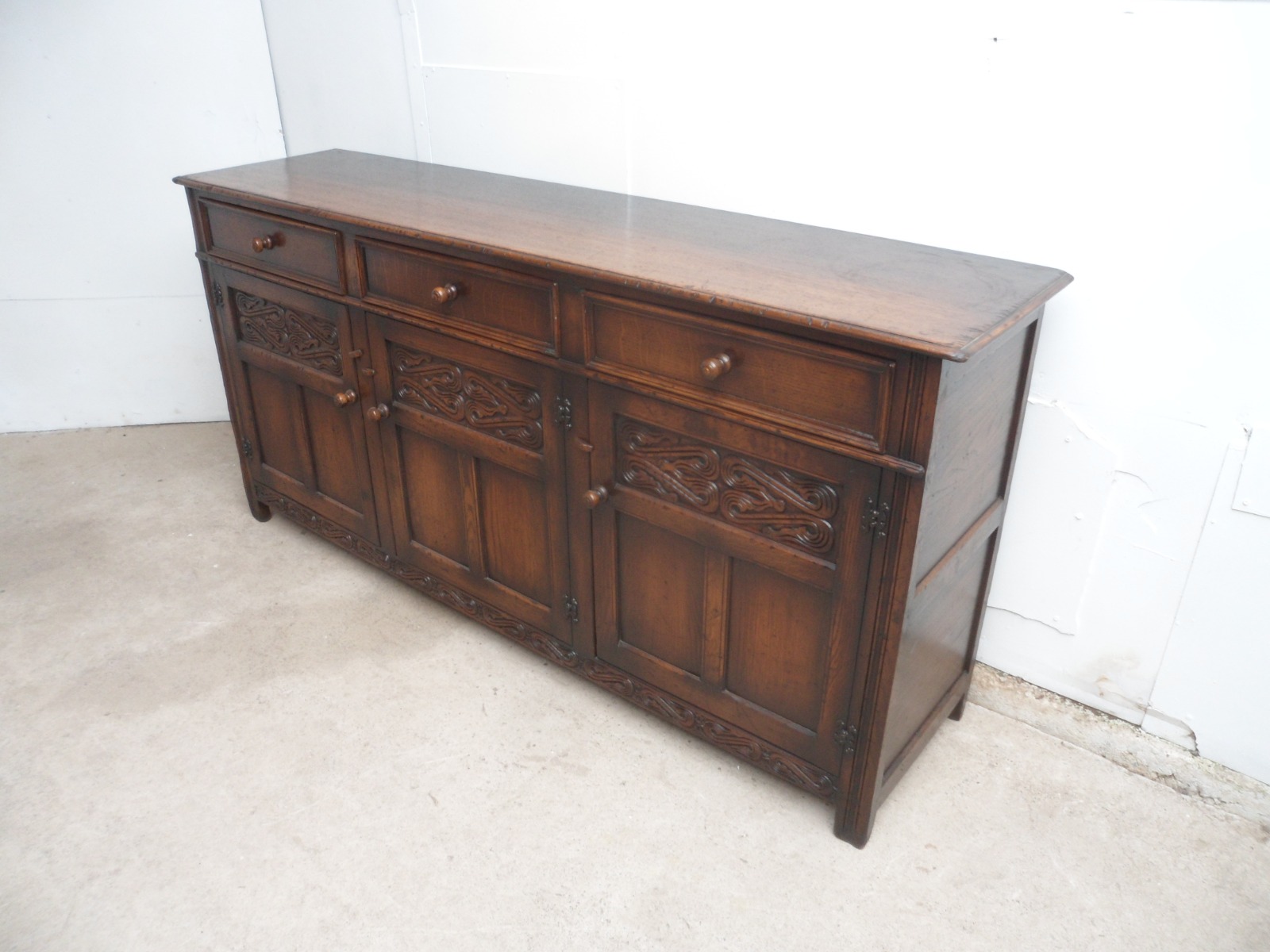 Amazing 1920s Solid Golden Oak 3 Door Carved Sideboard Dresser Base