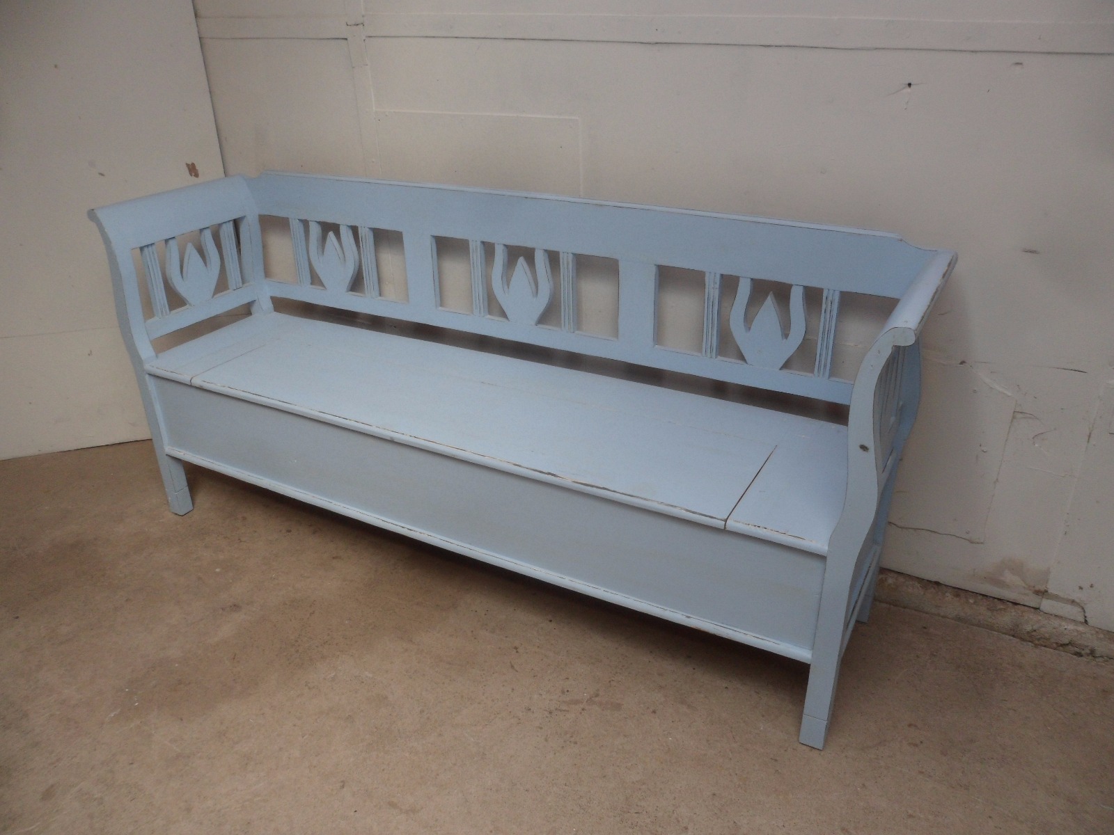 Amazing 3/4 Seater Sky Blue Pine Shabby Chic Box Settle / Bench