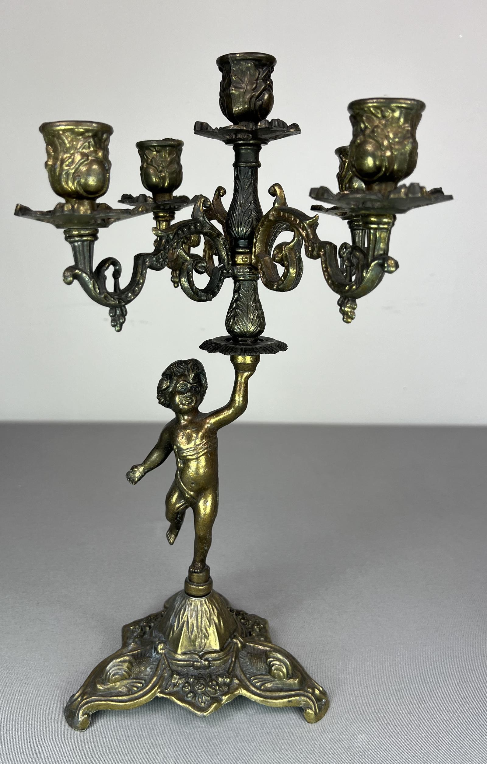 Amazing Five Arm French Vintage Brass Candelabra