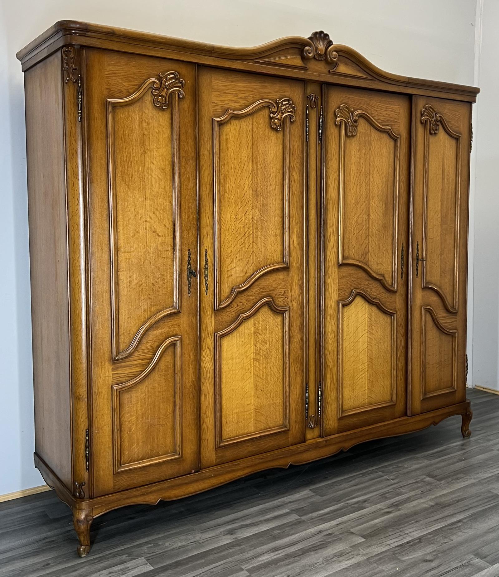 Amazing French Carved 4 Door Armoire Wardrobe