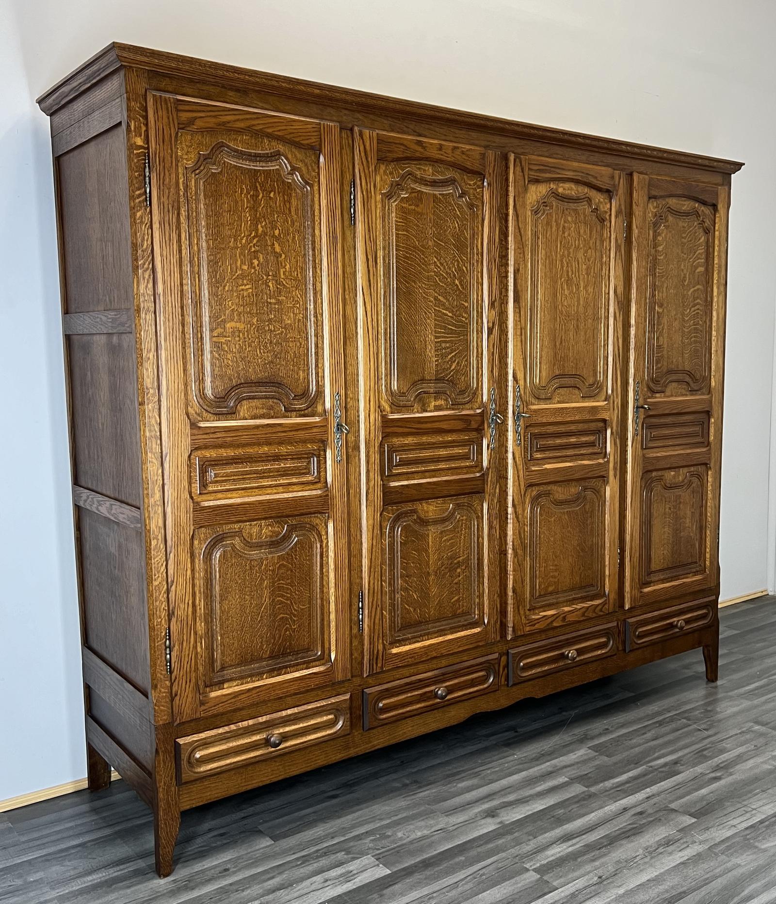 Amazing French Carved 4 Door Armoire Wardrobe