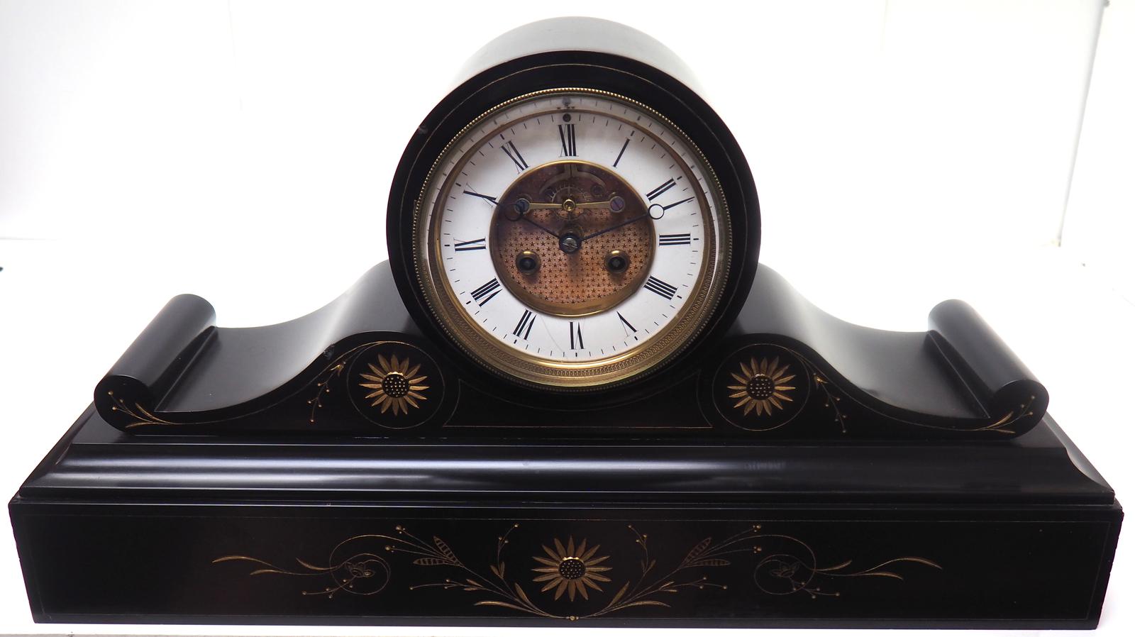 Amazing French Slate Mantel Clock Visible Escapement 8 Day Striking Mantle Clock
