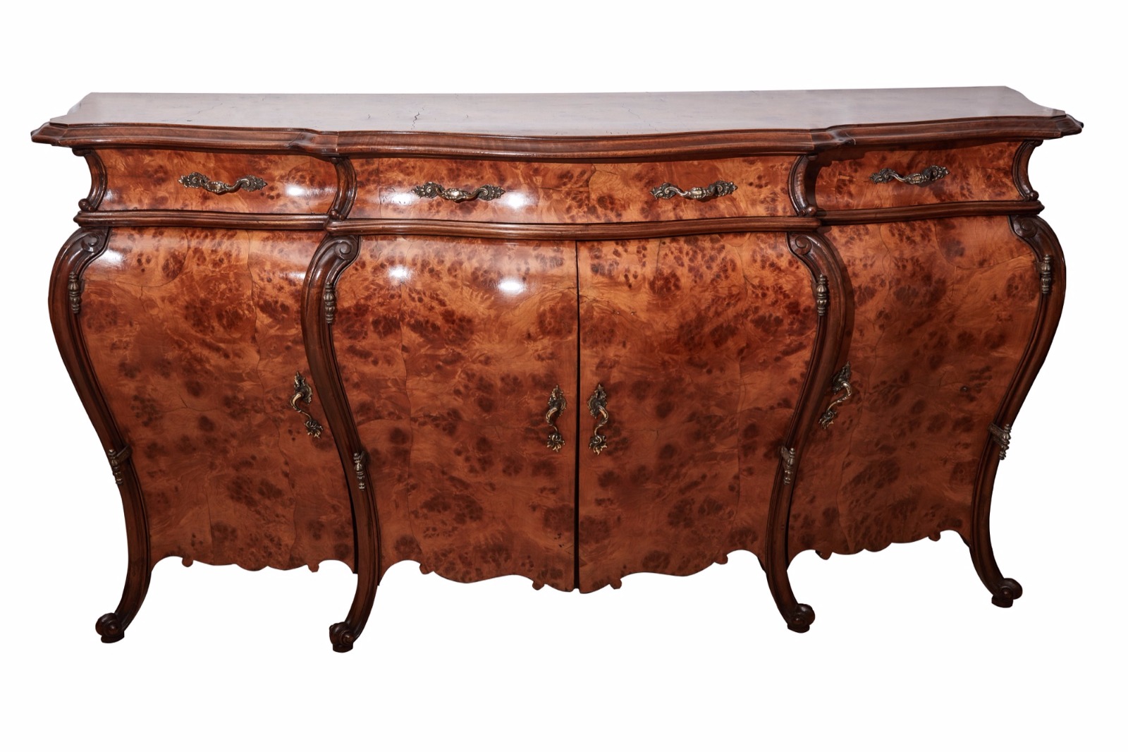 Amazing Large French Burr Walnut Bombe Shaped Sideboard c.1900