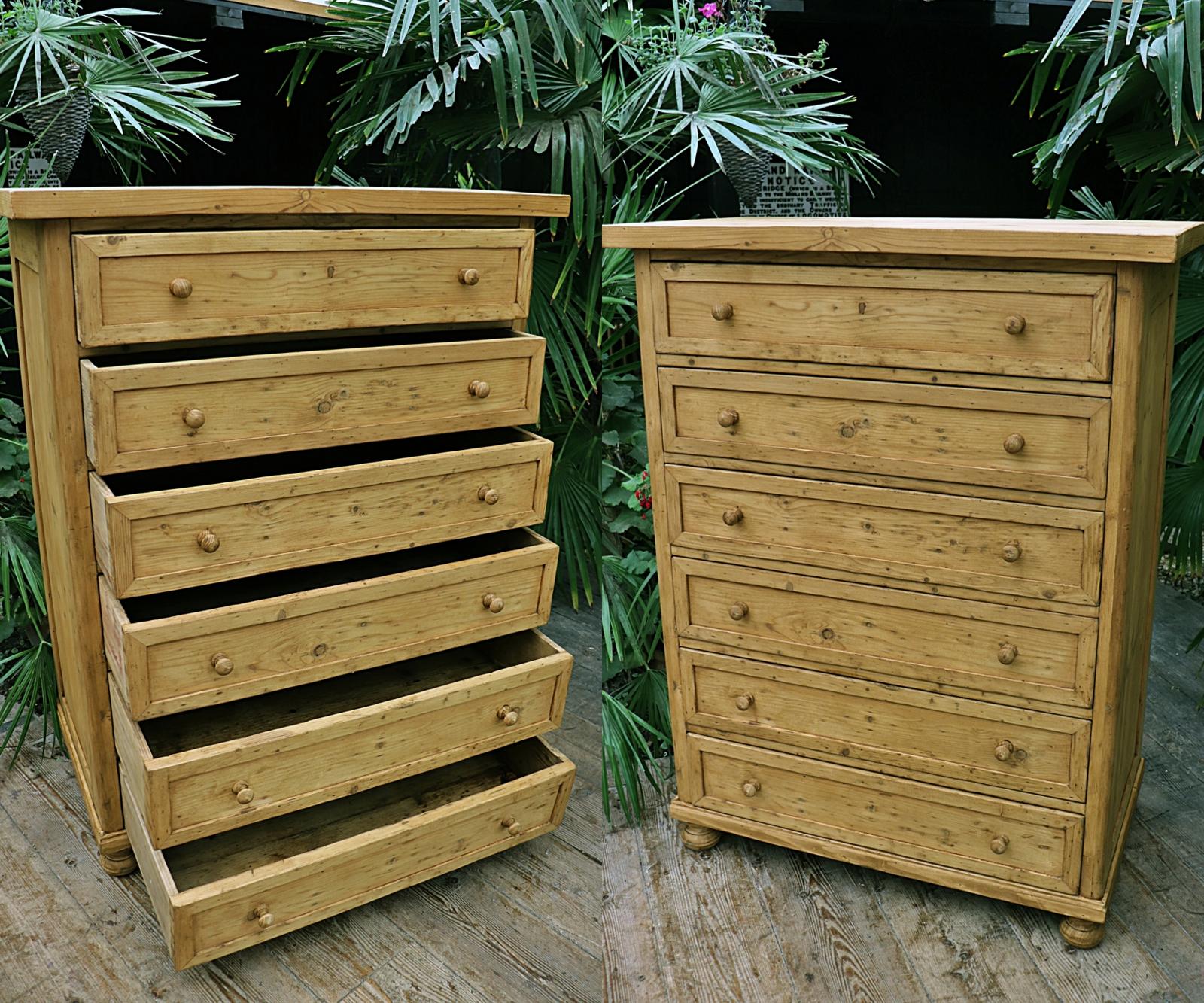 Amazing! Large & Rare Old Stripped Pine Chest Six Drawers / Tallboy