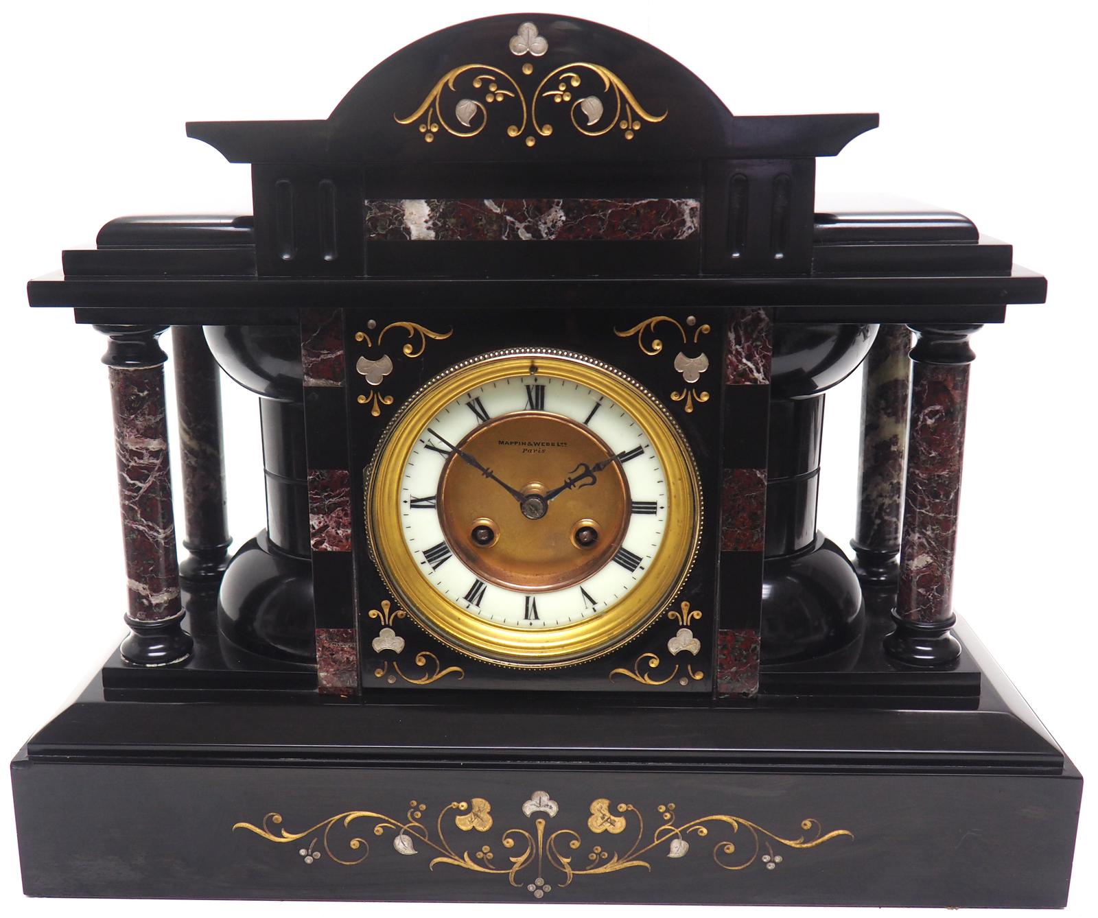 Amazing Mappin & Webb French Slate & Marble Mantel Clock 8 Day Striking Mantle Clock