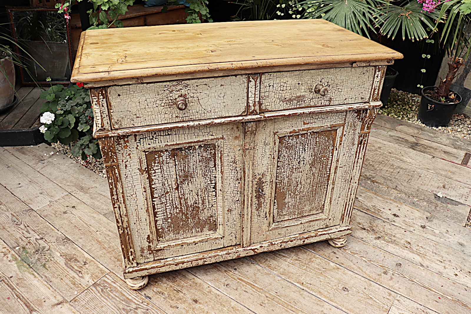 Amazing! Old Pine / Painted White Dresser Base Sideboard / Cupboard - We Deliver!
