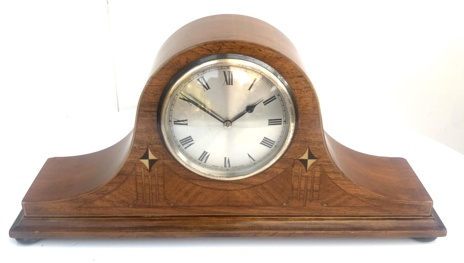 Amazing Solid Mahogany Timepiece Mantel Clock Hat Shaped Inlaid Decoration with Kingwood Veneer (1 of 12)