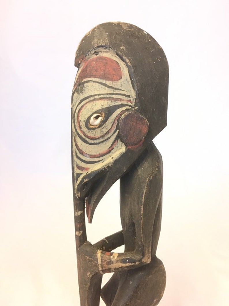 Amazing Tribal Art Effigy from Papua New Guinea Depicting a Tribal Man in a Full Face Mask