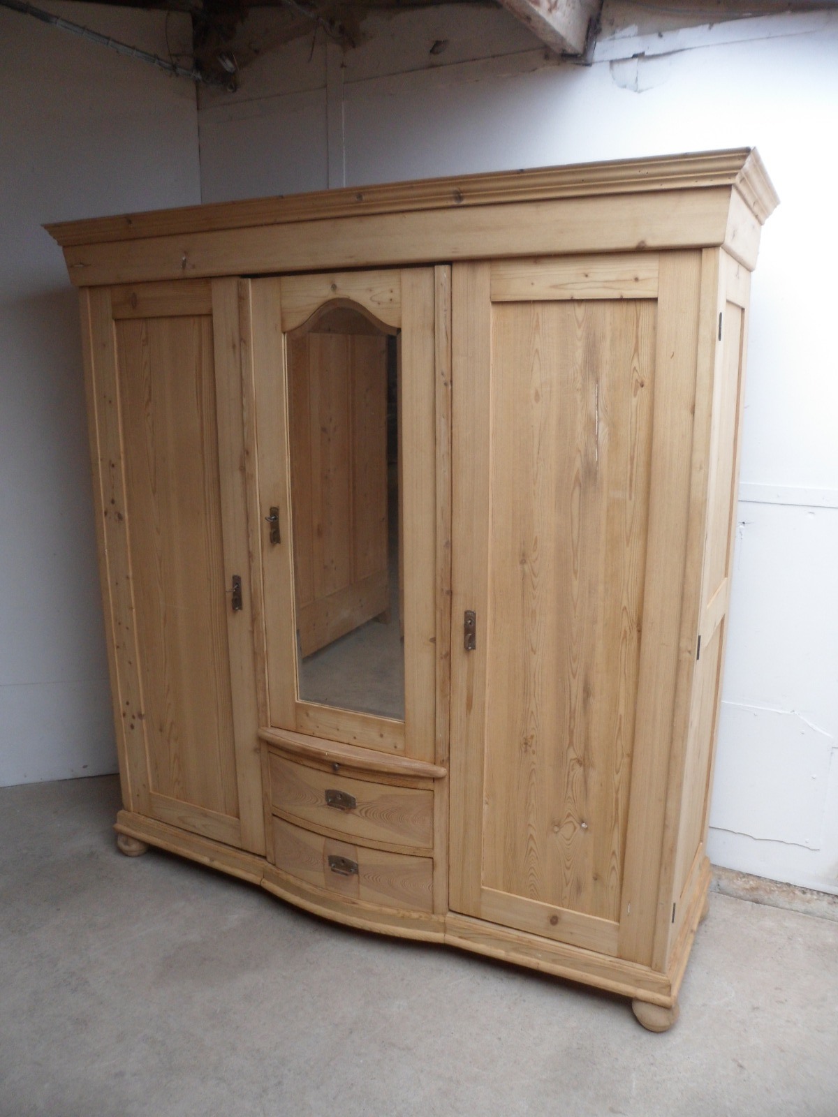 Amazing Triple Mirrored Old Pine Knockdown Wardrobe to wax / paint