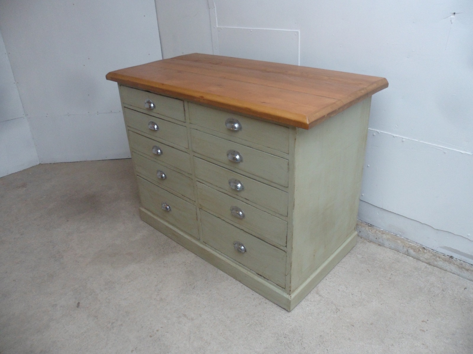 Amazing Victorian Antique Pine Painted 10 Drawer Chest / Kitchen Island