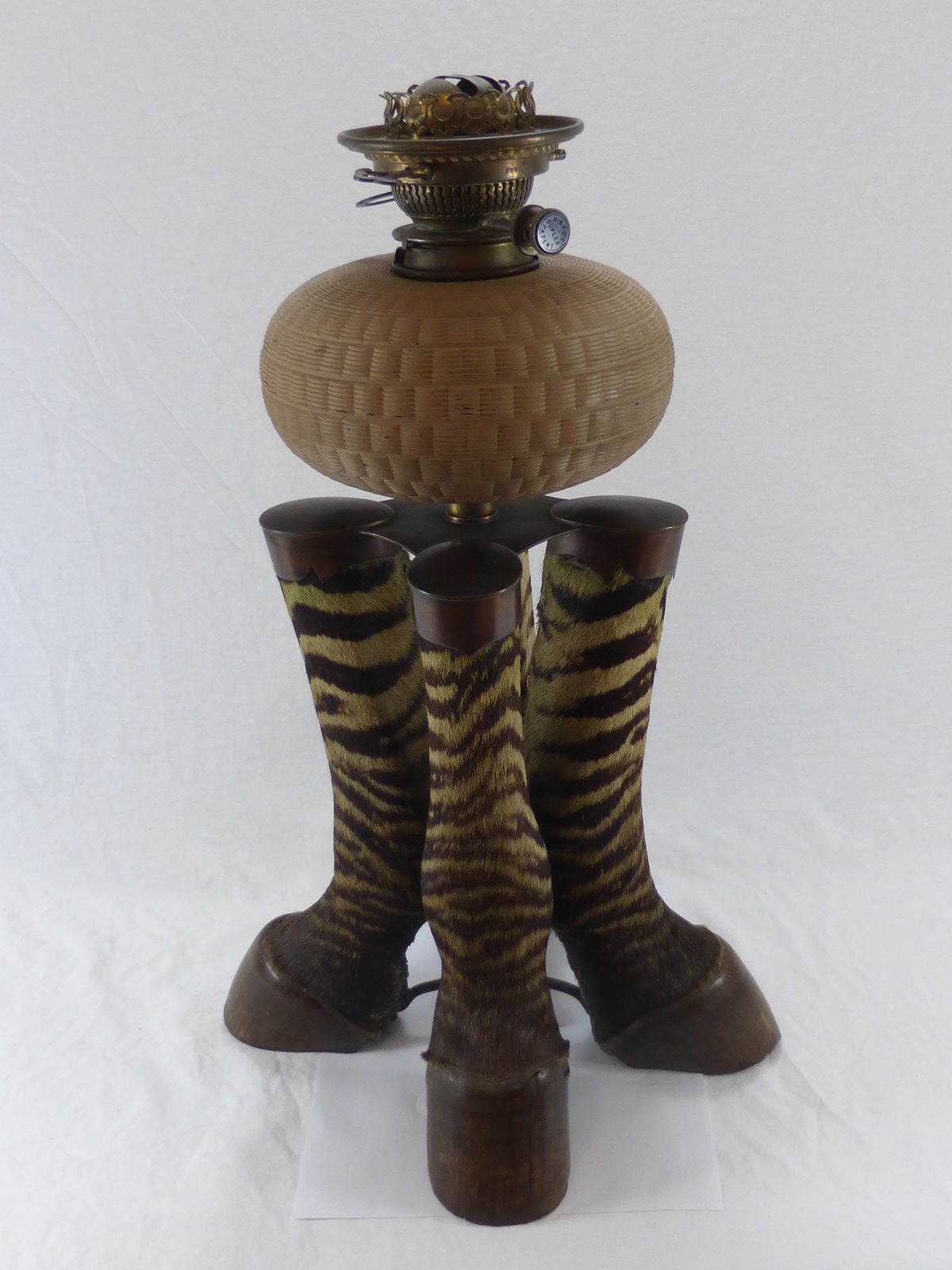 Amazing Victorian Zebra Taxidermy Oil Lamp Curiosity