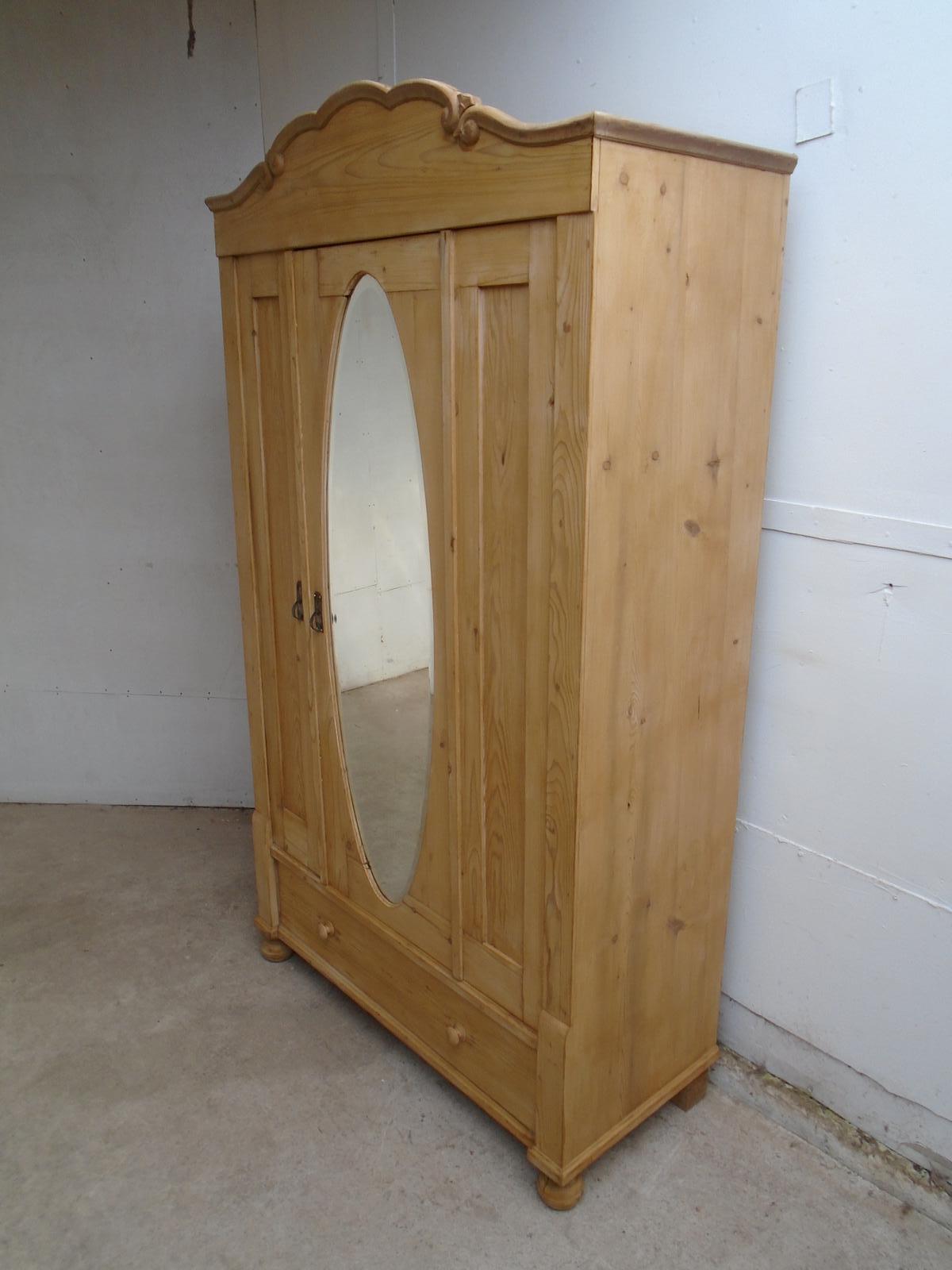 Amazing Waxed Victorian Antique Pine 1 Piece Oval Mirrored Wardrobe