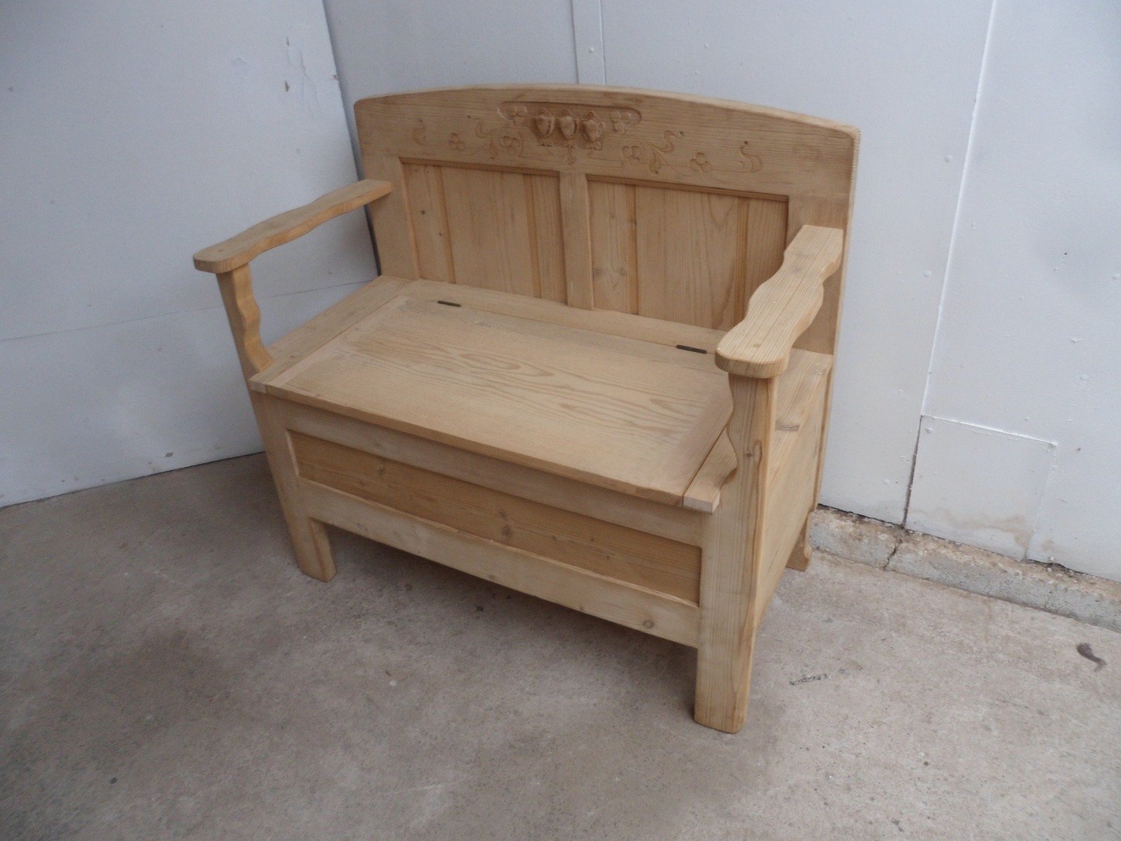 Amazingly Carved Old Pine 1/2 Seater Box Settle / Bench to paint / wax