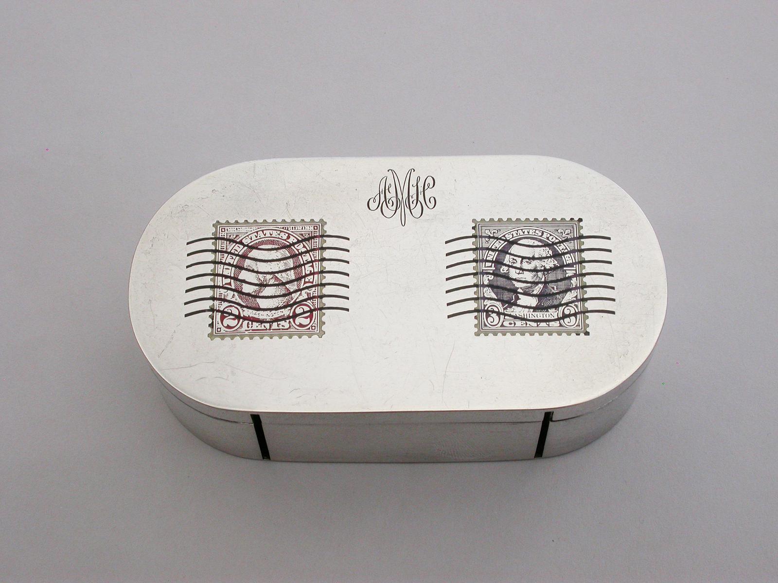 American Sterling Silver & Enamel Double Stamp Roll Dispenser Box by The Thomae Company, Attleboro, Massachusetts, U.S.A c.1932