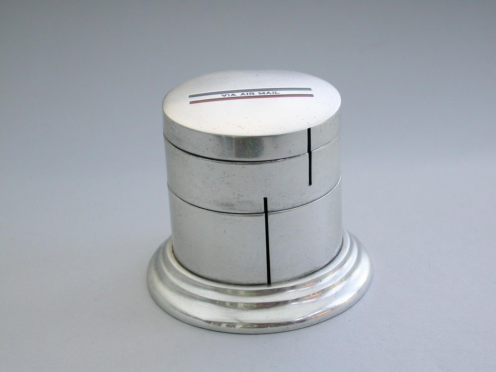 American Sterling Silver & Enamel Twin Compartment Stamp Roll & Airmail Label Dispenser