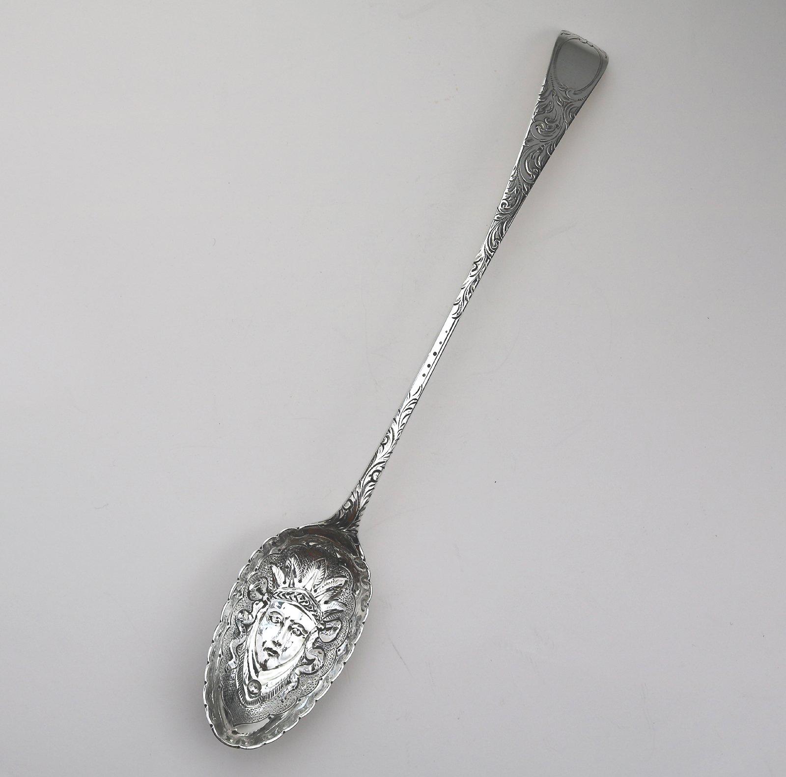 American Themed Pocahontas - Scottish Georgian Solid Silver Basting Spoon c.1777