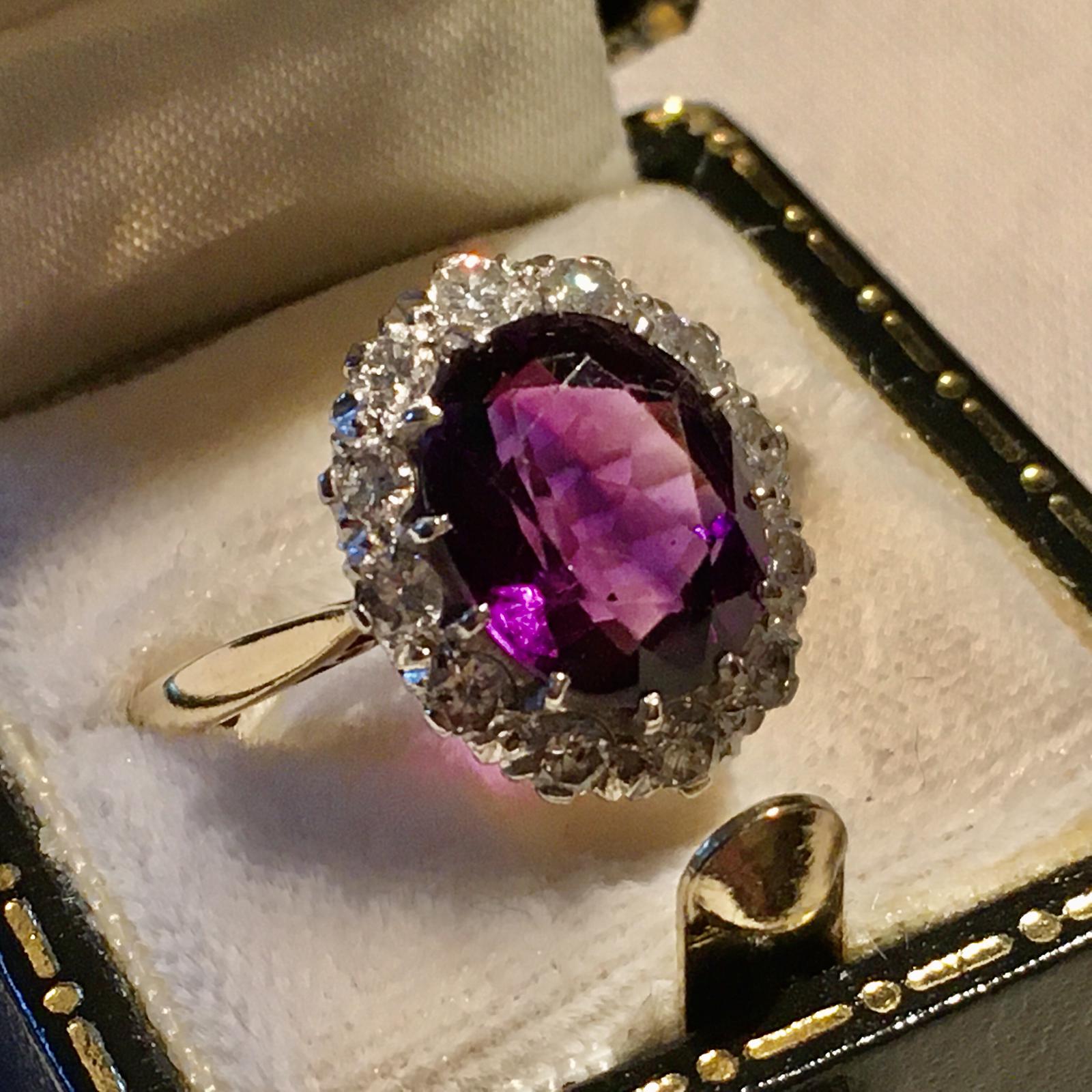 Amethyst & Diamond Cluster Ring in 18ct Gold