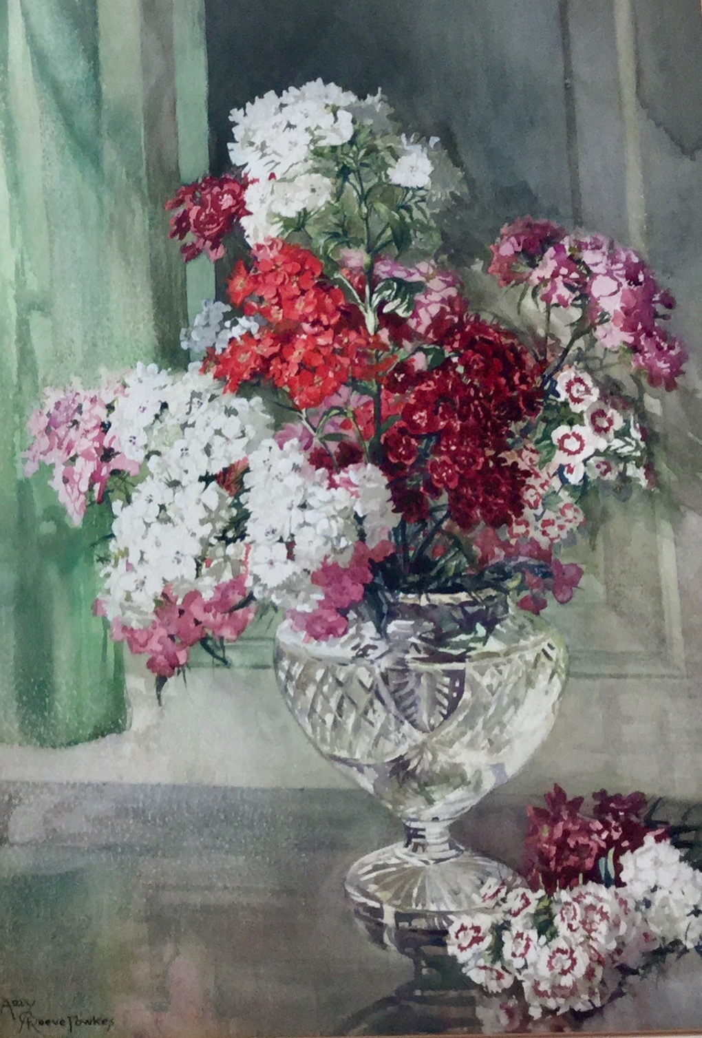 Amy Reeve Fowkes Watercolour ‘Sweet Williams in a Cut Glass Vase’