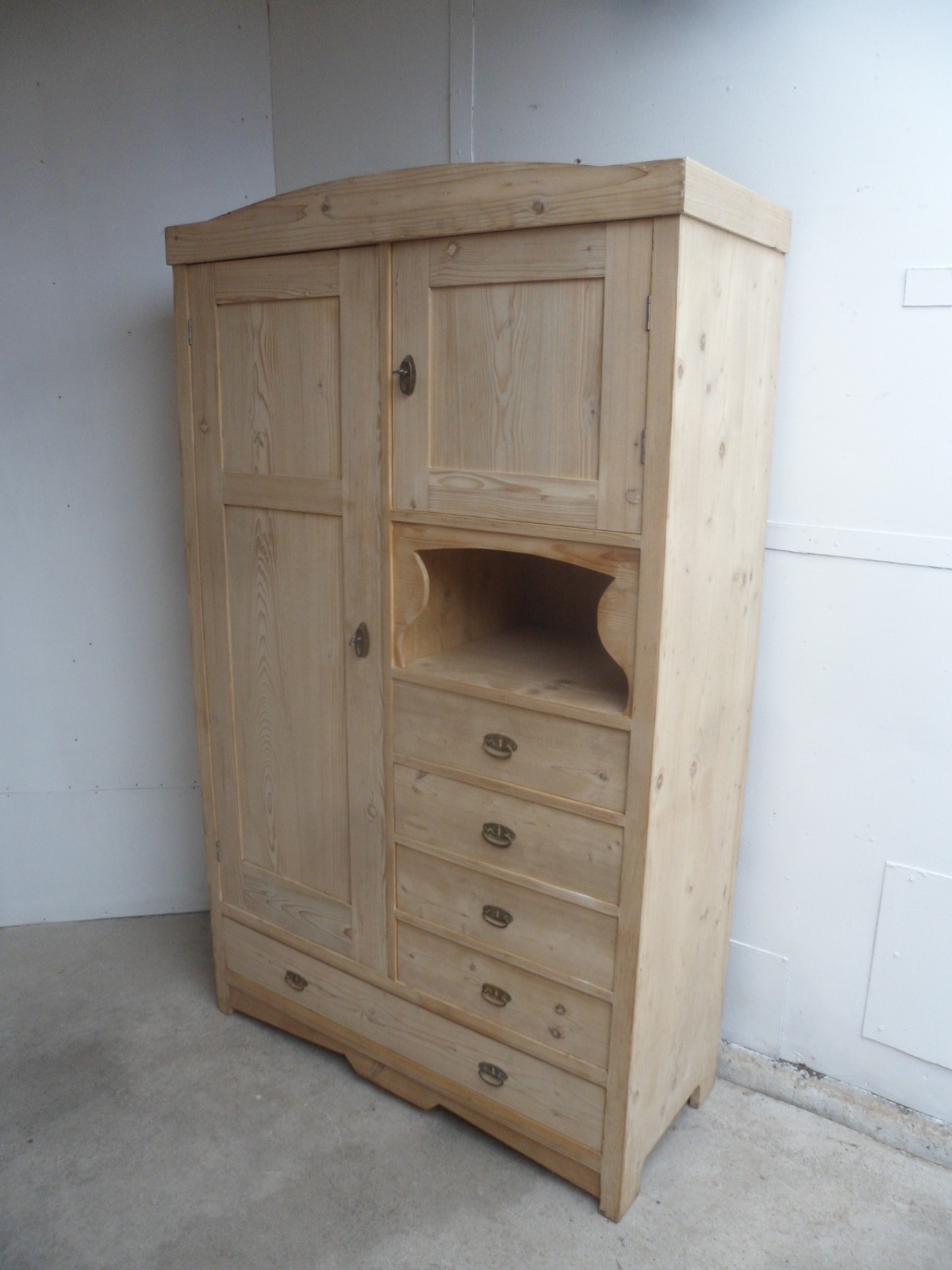 An Amazing Antique/Old Pine 1 Piece Large Combination Wardrobe To Wax/Paint
