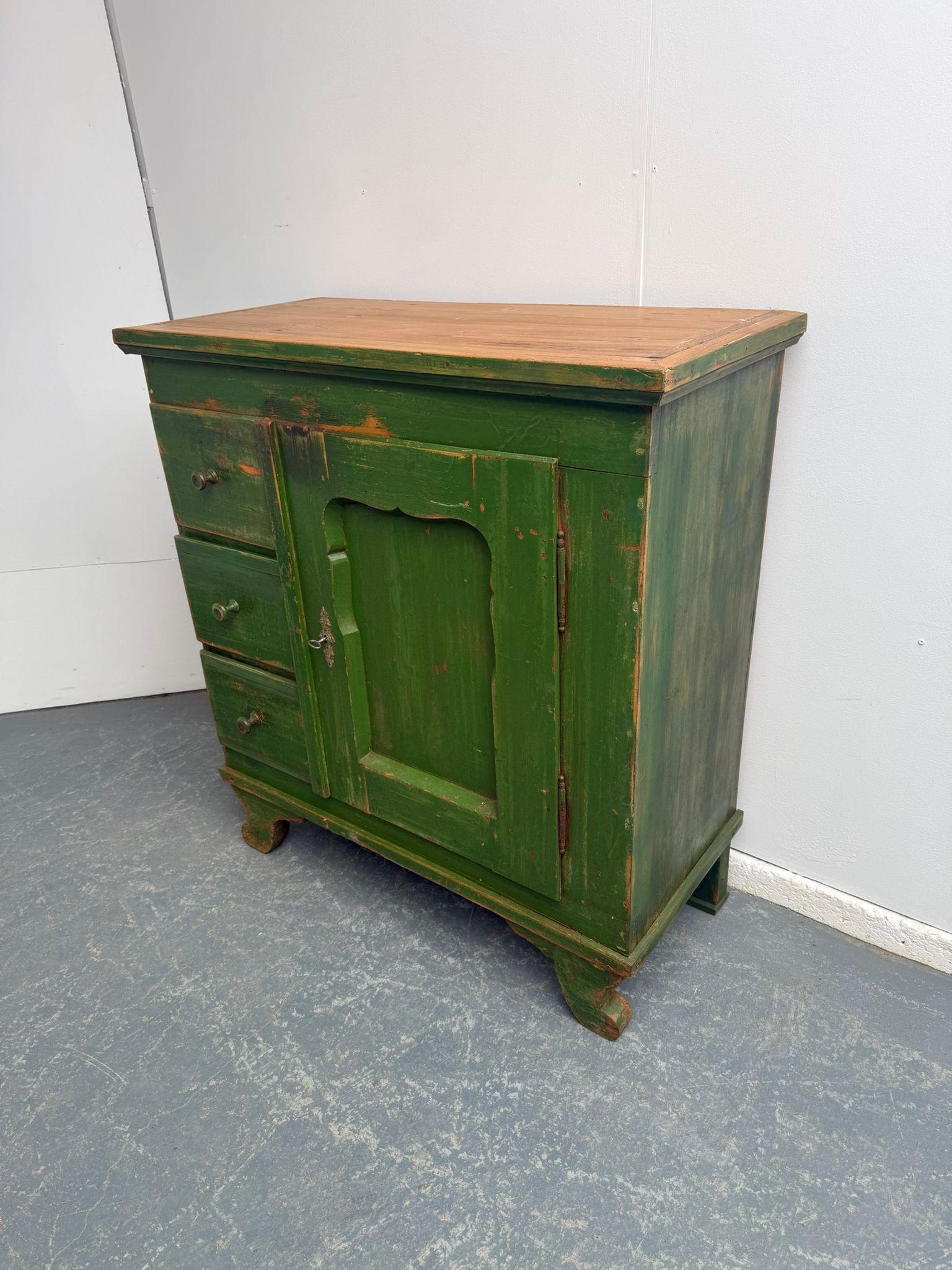 An Amazingly Painted Green Georgian 3 Drawer 1 Door Original Hungarian Cupboard