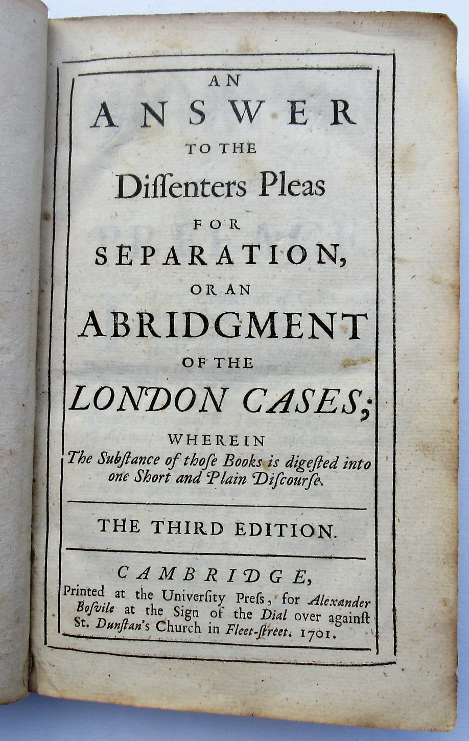 An Answer To the Dissenters Pleas, Thomas Bennet 1701, Religious Writings